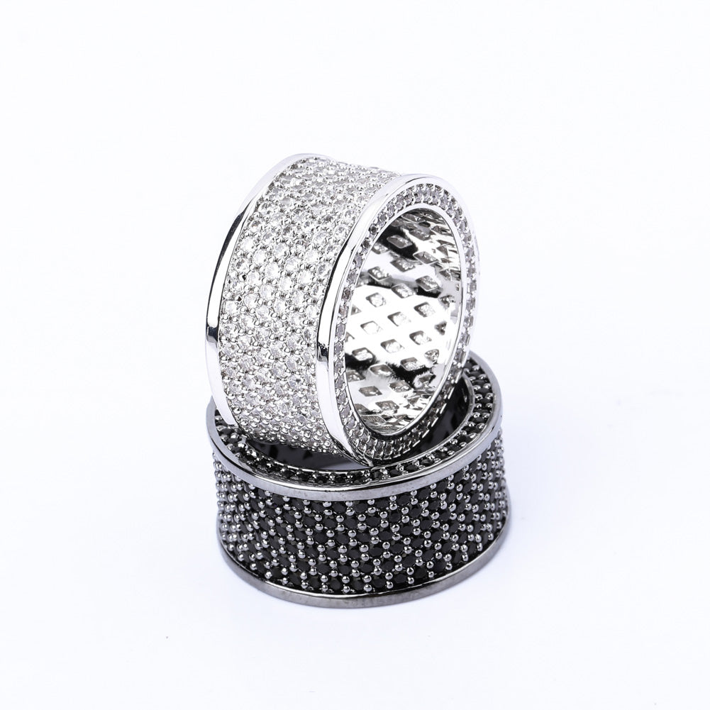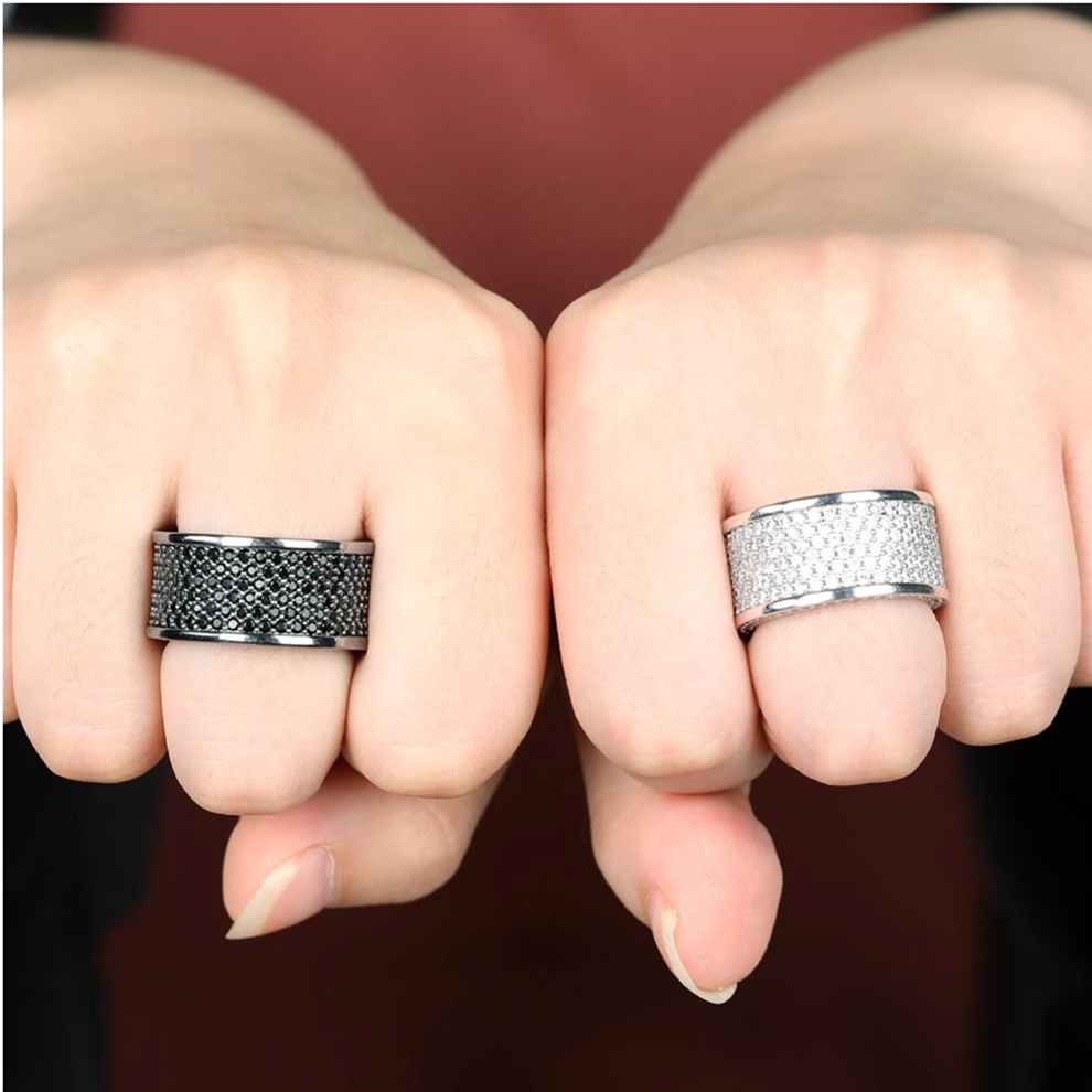 Black Silvery Iced-Out Bling Ring – Micro Pave CZ Statement Ring for Men & Women