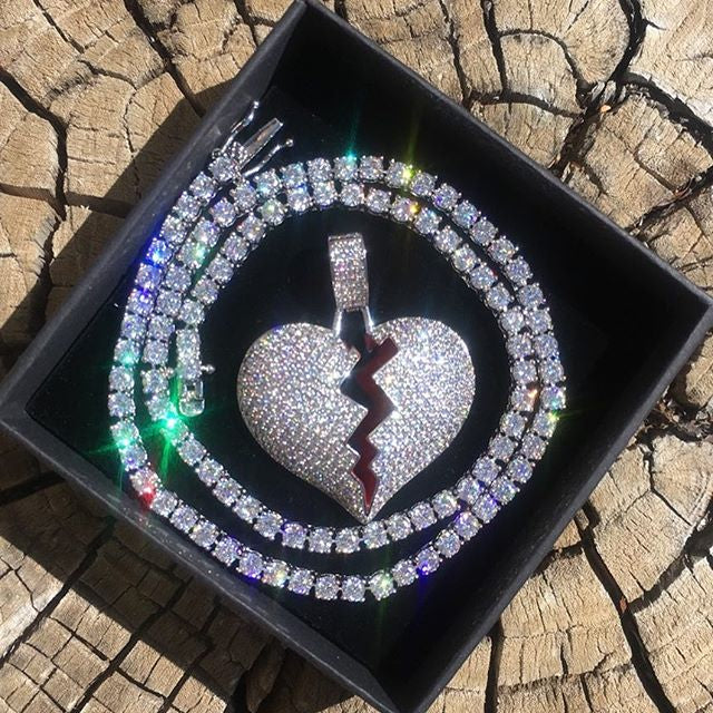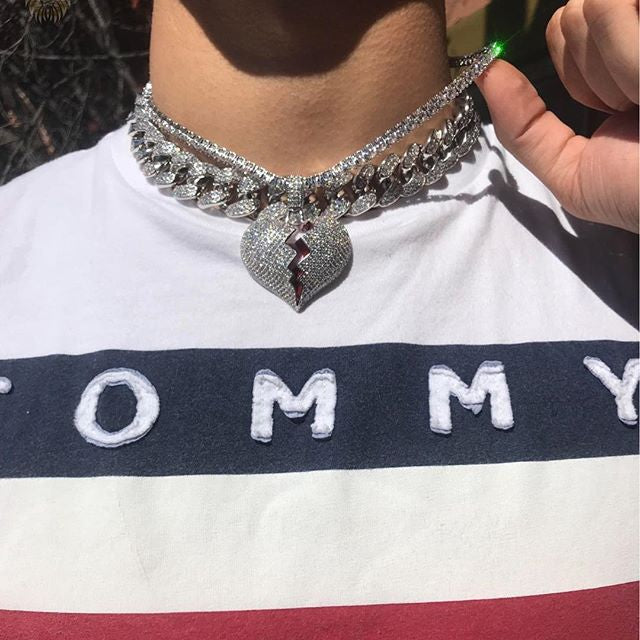 Make a statement that lasts with this Broken Lacie Heart Iced Out Zirconia Pendant Necklace. Whether you’re dressing for a party or just want to add some hip-hop flair to your everyday look, this necklace has the perfect mix of style and shine.