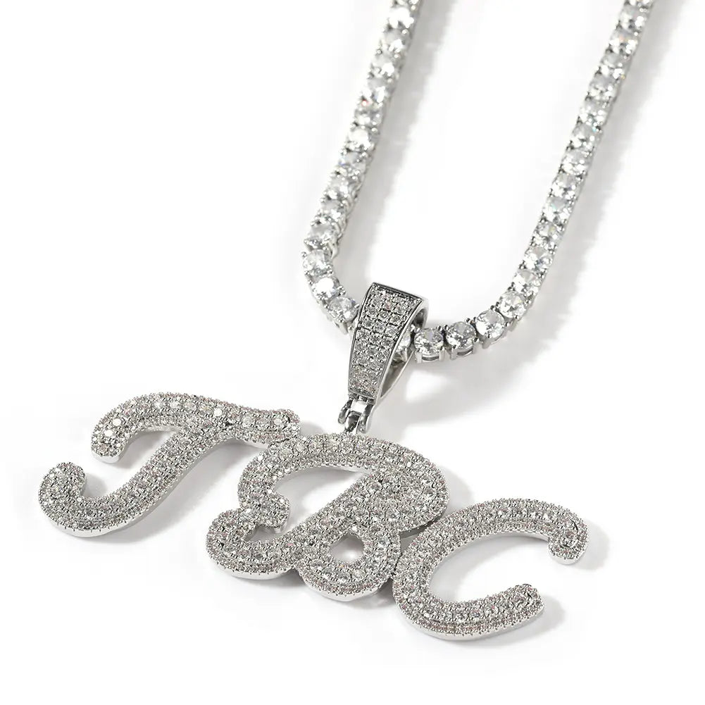 Elevate your jewelry game with the ICE STONE Brush Font Cursive Letter Custom Name Necklace, designed for those who love making a bold, personalized statement. Featuring a full iced-out design with zircon stones, this hip hop necklace is crafted to sparkle and shine with every movement. Its cursive letter design adds a unique and stylish touch, making it the perfect accessory for anyone who loves customized, statement pieces.