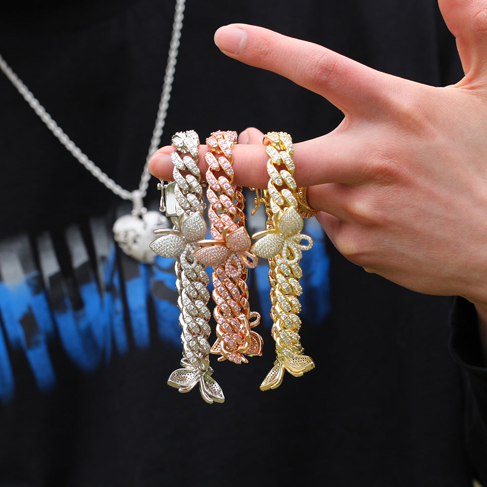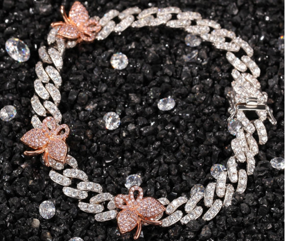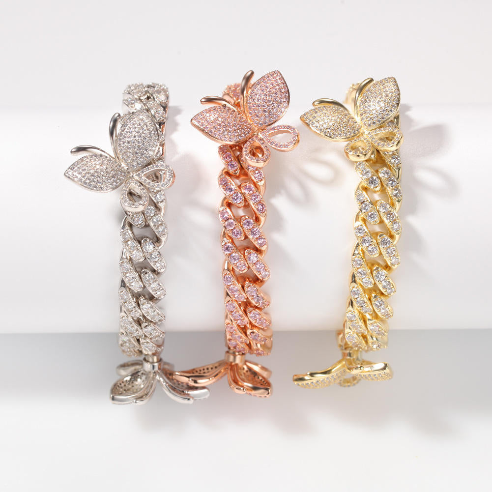 New Design Summer Iced Out Butterfly Cuban Chain Bracelet – Rose Gold / Silver / Gold | ICE STONE