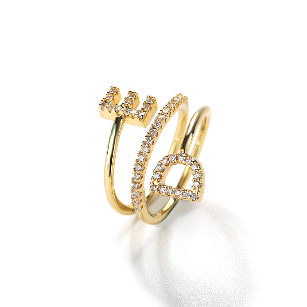 Personalized 18K Gold Plated Fashion Jewelry – Slim Two-Letter Resizable Custom Name Ring