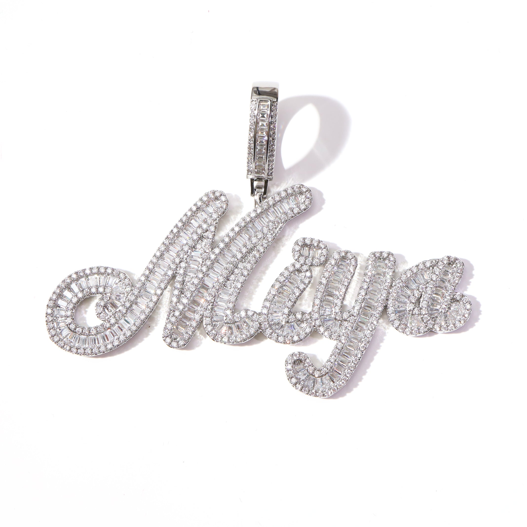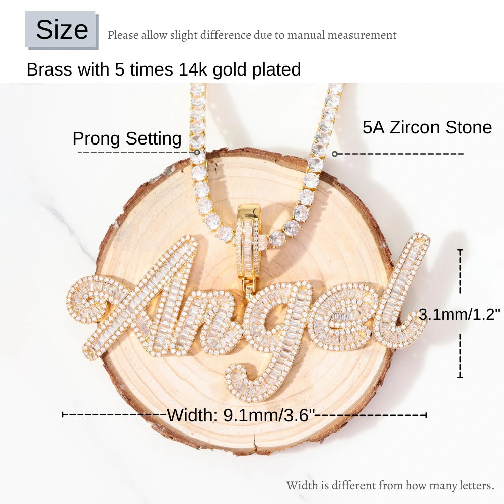 Add luxury and personalization to your jewelry collection with the Iced Out Custom Name Necklace. Featuring a stunning 14K real gold plating, this necklace is the ultimate blend of hip hop style and high-end craftsmanship. The baguette brush letter pendant is encrusted with 5A cubic zirconia stones that catch the light, creating an undeniable iced out look.
