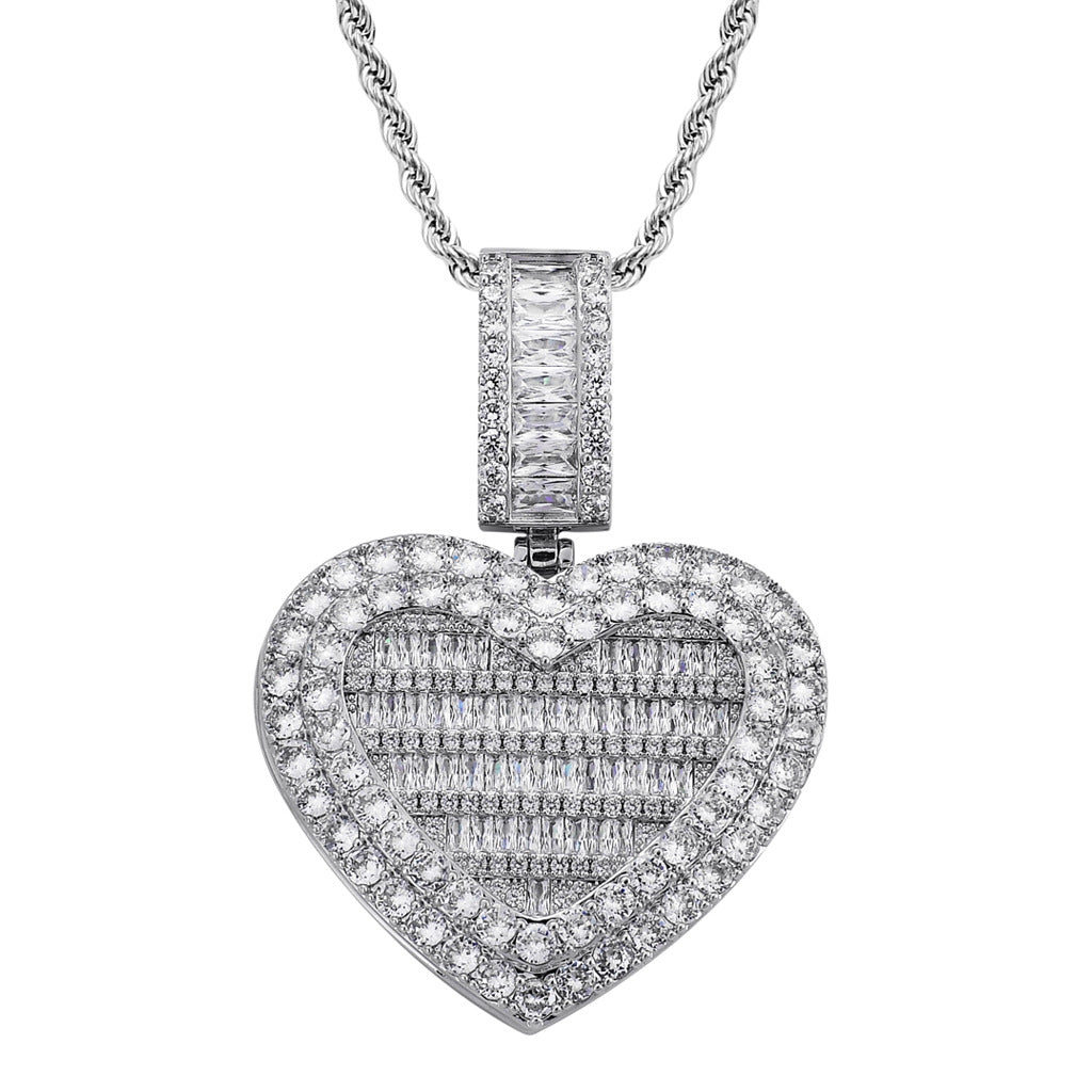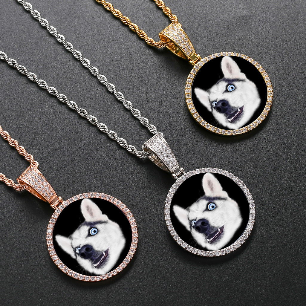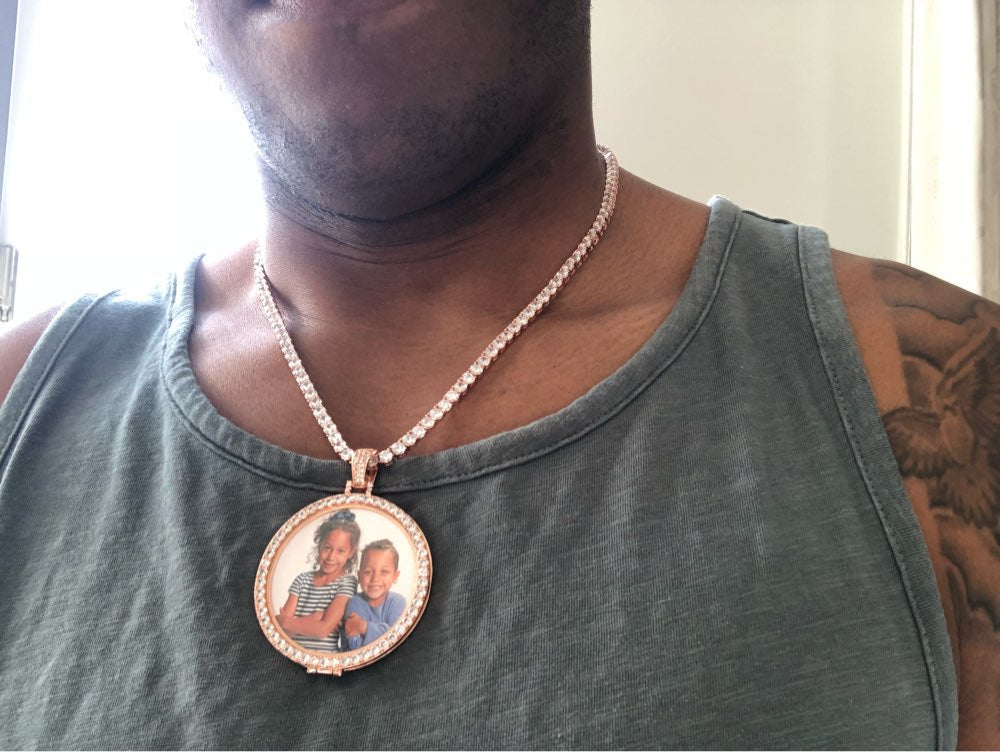 Capture and showcase your cherished memories with the Custom Memory Photo Frame Medallions Necklace & Pendant from ICE STONE. This personalized hip hop jewelry features a stunning medallion necklace crafted from high-quality copper and adorned with sparkling 3A cubic zirconium. The necklace is designed to hold a precious photo of your loved one, creating a perfect customized gift for any occasion.