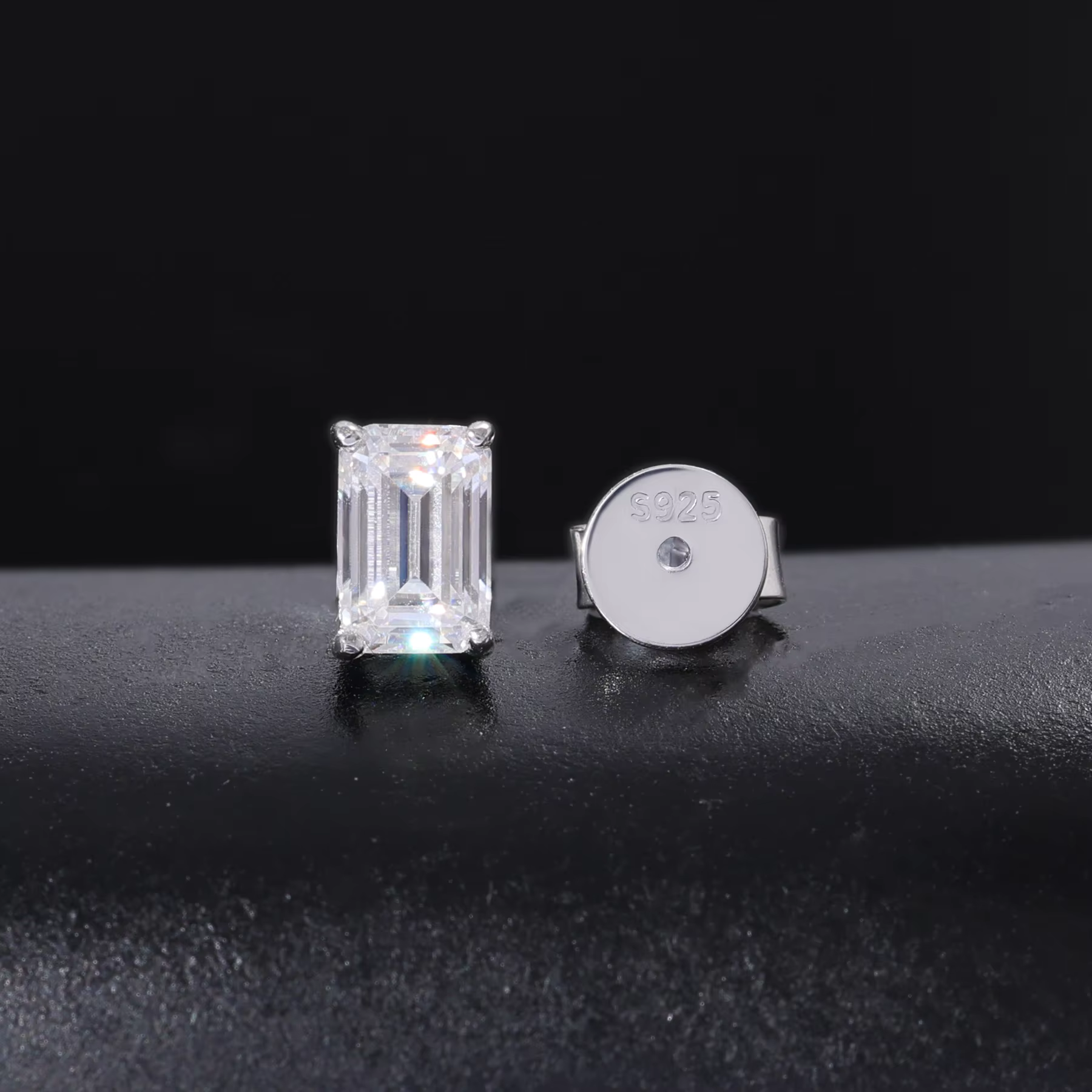 Refined and radiant, the Designer Square Stud Earrings from ICE STONE exude classic elegance with a modern twist. Expertly crafted from 925 sterling silver and set with emerald-cut Moissanite stones, these earrings shine with the brilliance of diamonds—at a fraction of the price. Ideal for both casual and formal wear, they bring effortless luxury to any outfit.