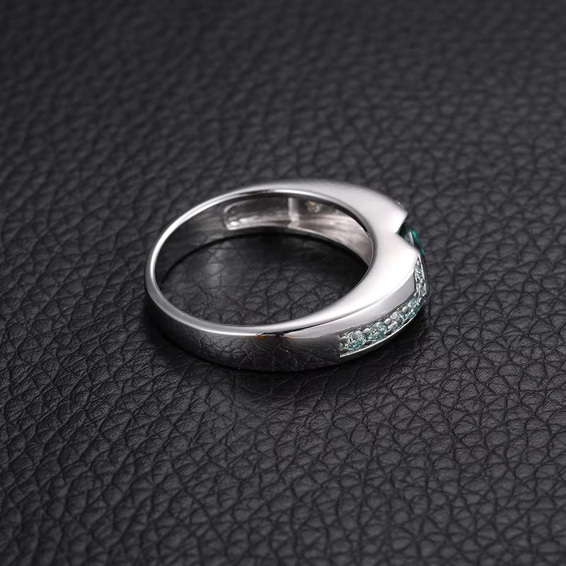 Moissanite Ring — a bold unisex accessory crafted from high-quality 925 sterling silver and set with a striking green VVS D-grade moissanite stone that passes the diamond tester. Designed with a punk-inspired edge and mystical symbolism, this ring makes a statement in both fashion and meaning.