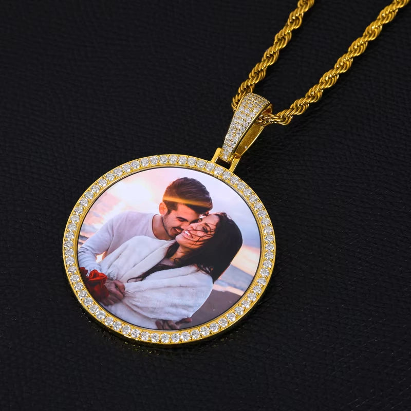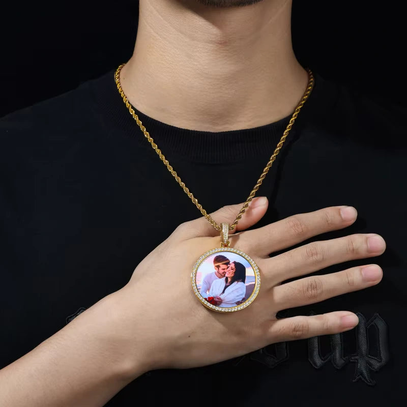 Fashion 925 Sterling Silver VVS D Moissanite 46mm Picture Pendant Bling Bling Custom Big Circle Photo Pendant Jewelry for Gift