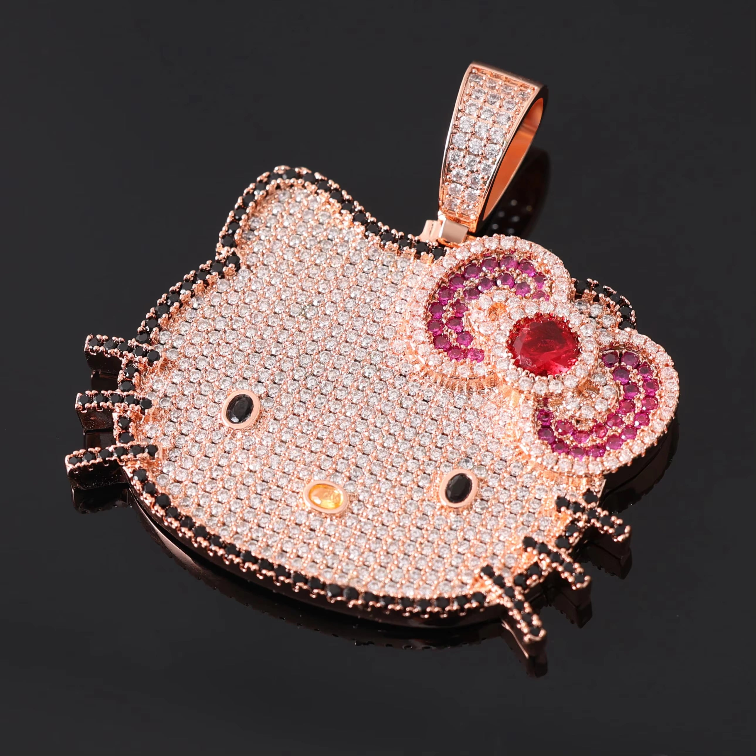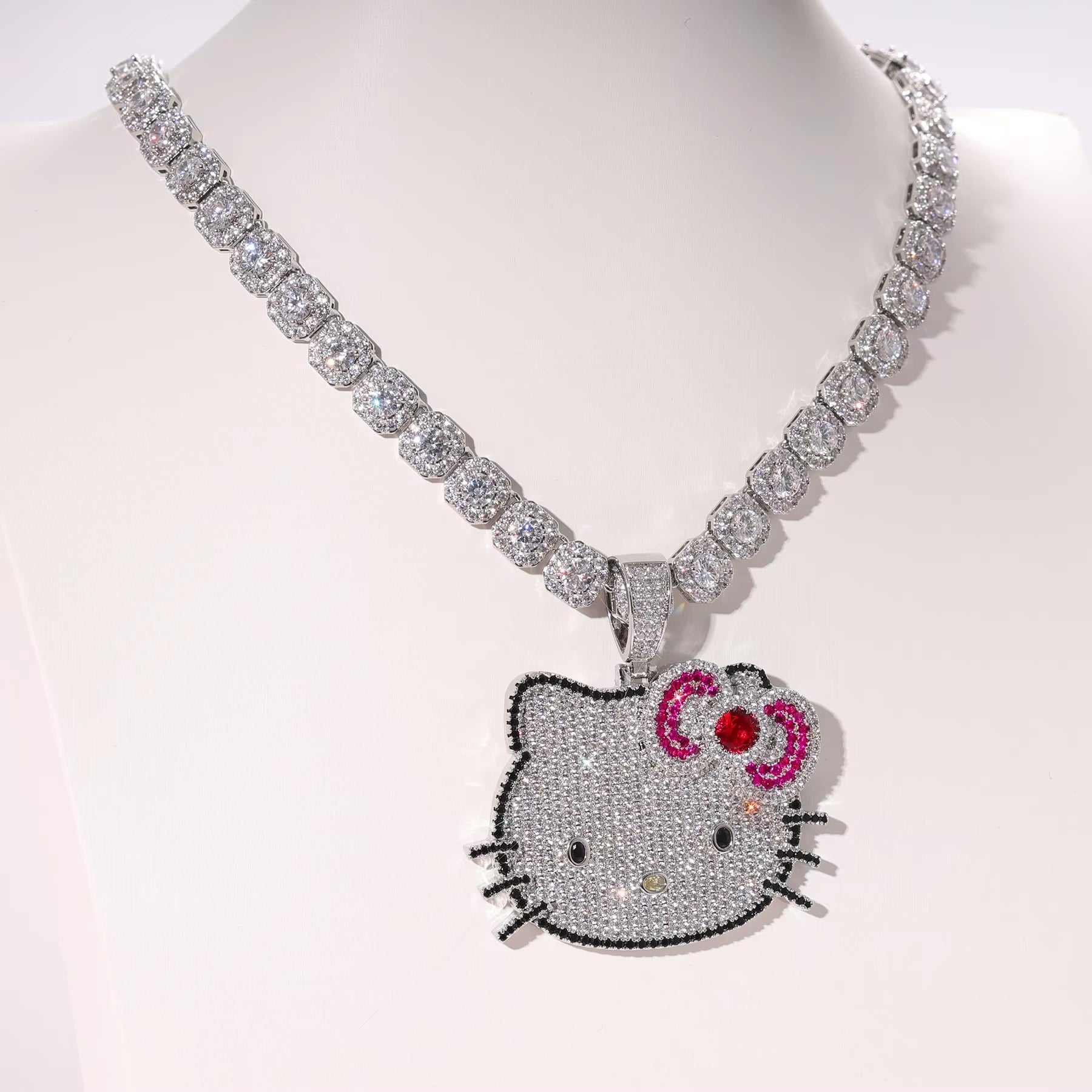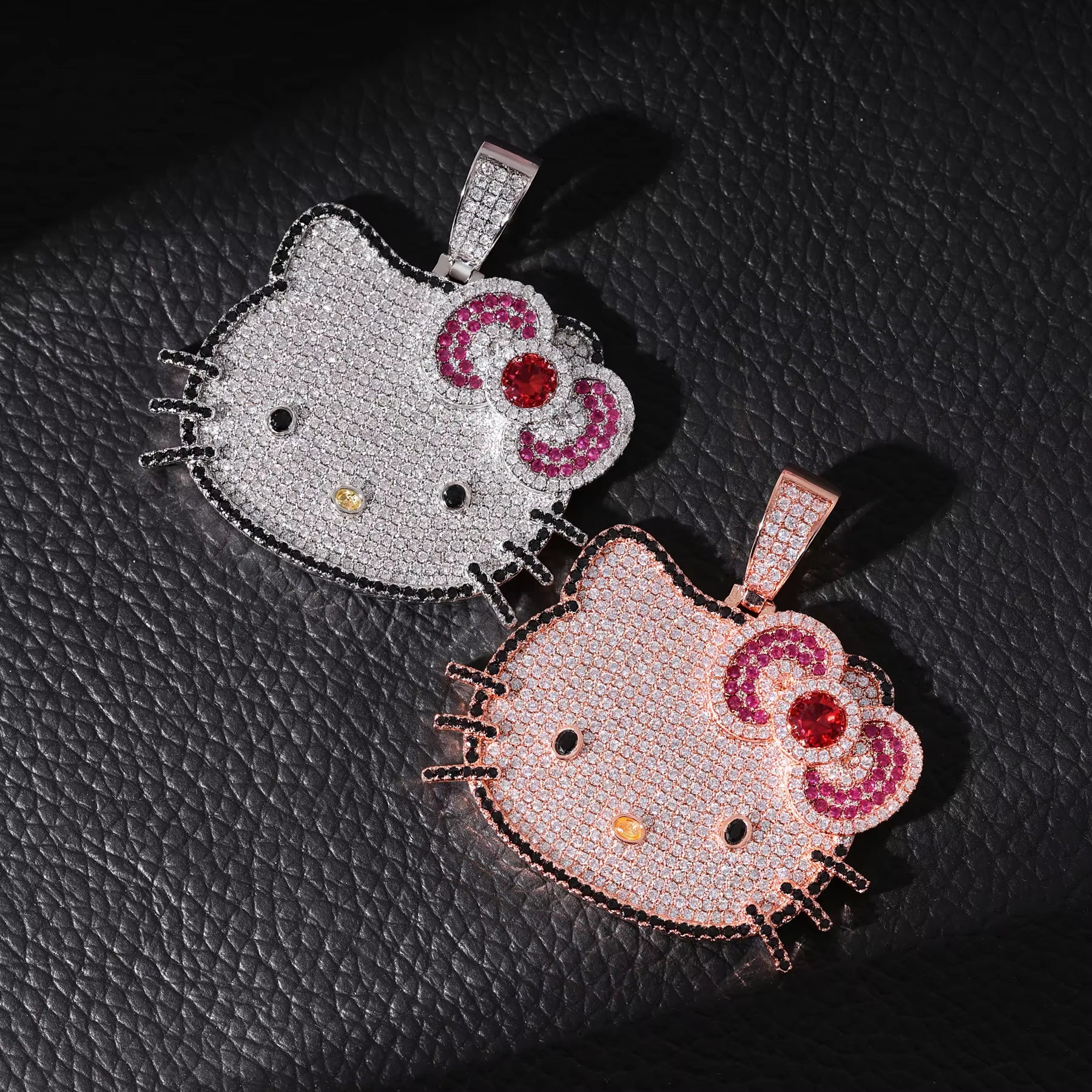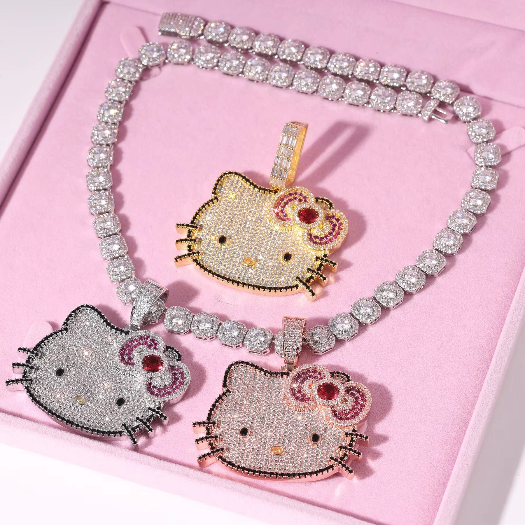 Fashion Women's Cute Hello Kitty Cat Necklace Pendant Iced Out Cartoon Necklaces Gold Plating for Anniversaries