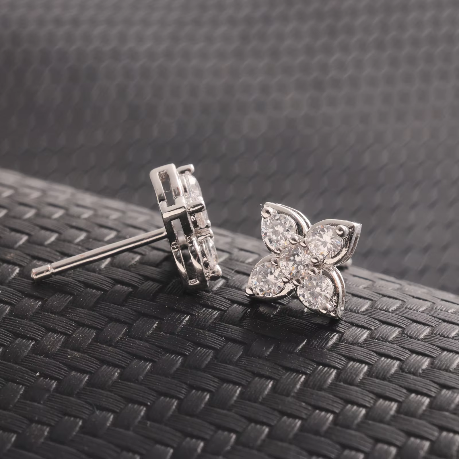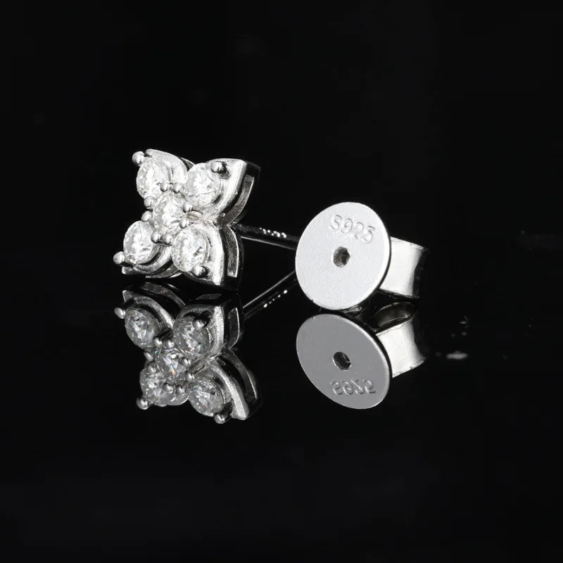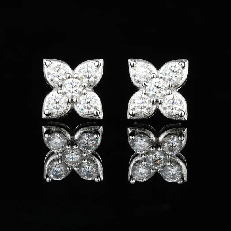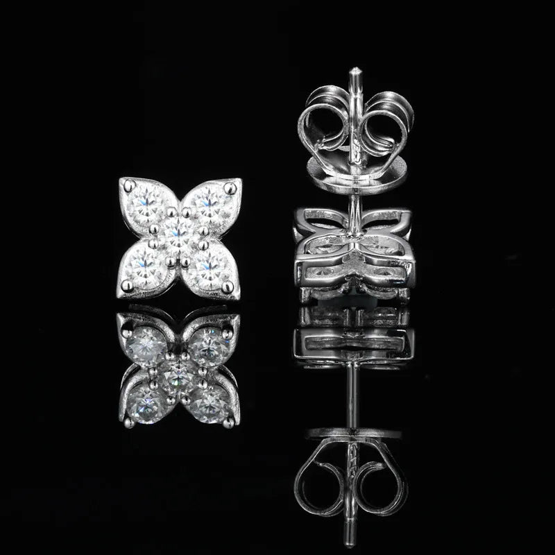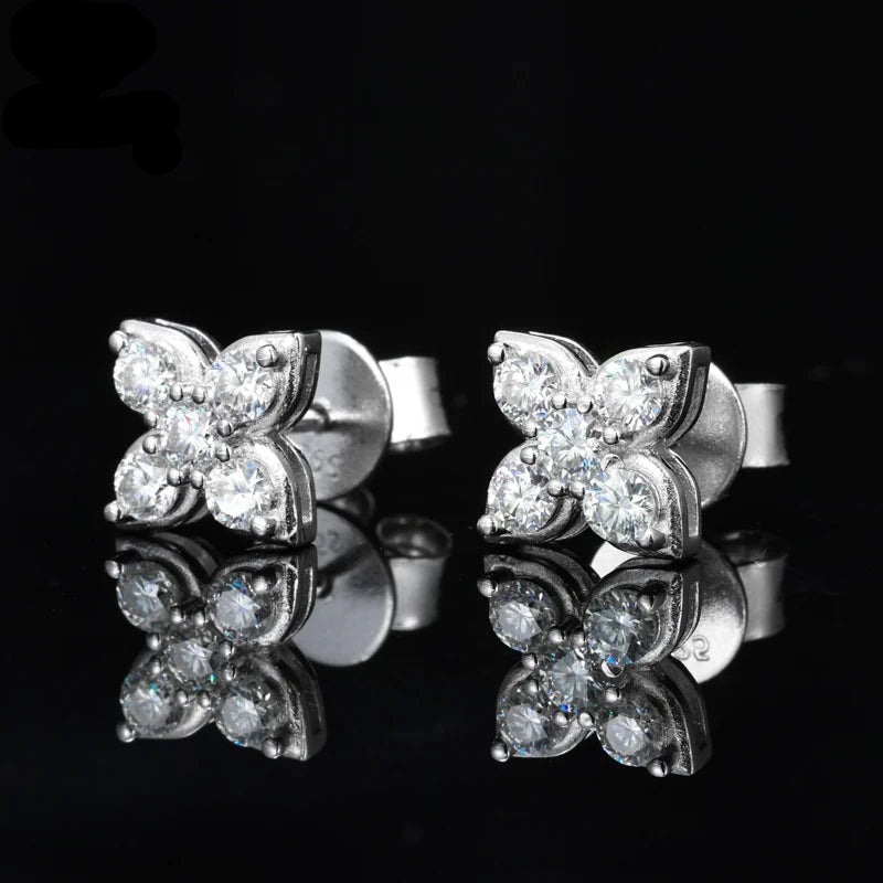 ICE STONE Four-Leaf Cross Earrings – VVS D Moissanite Sparkling Charm Earrings in 925 Sterling Silver