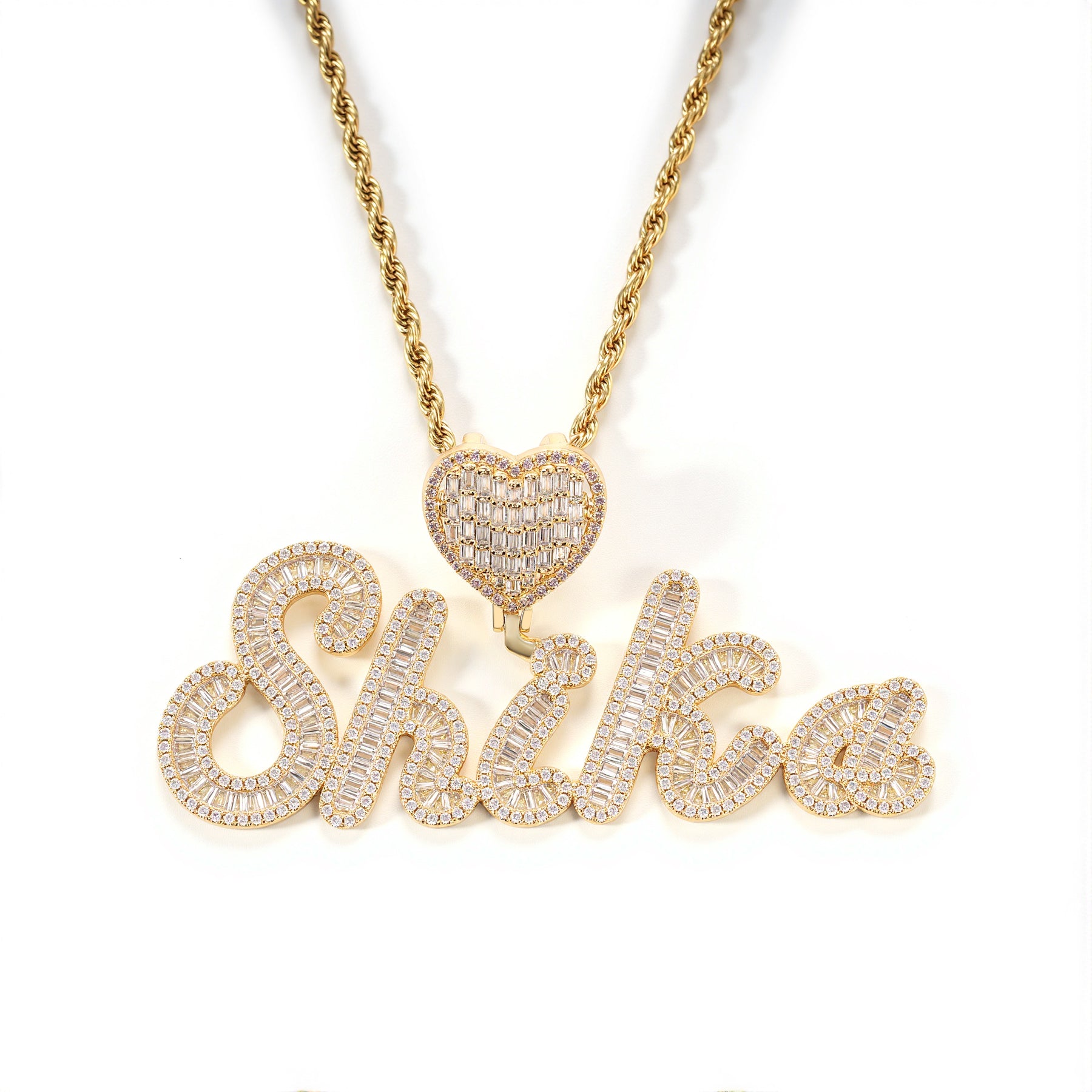 Baguette Custom Name Tennis Chain Necklace with Name - 18K Gold Plated CZ Bling Bling Name Plate Chain Necklace
