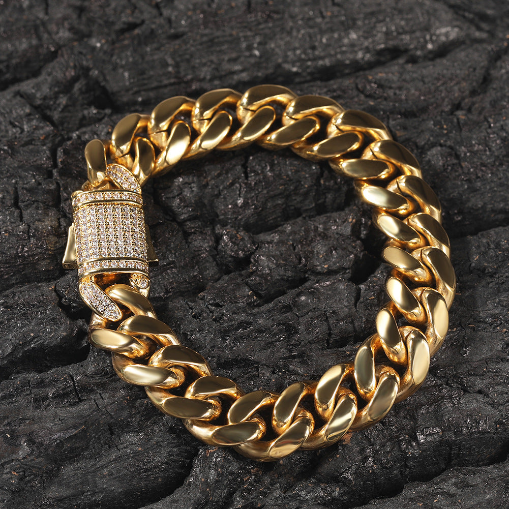 Hip Hop Classic Cuban Link Bracelet – Stainless Steel with 18K Gold Plating