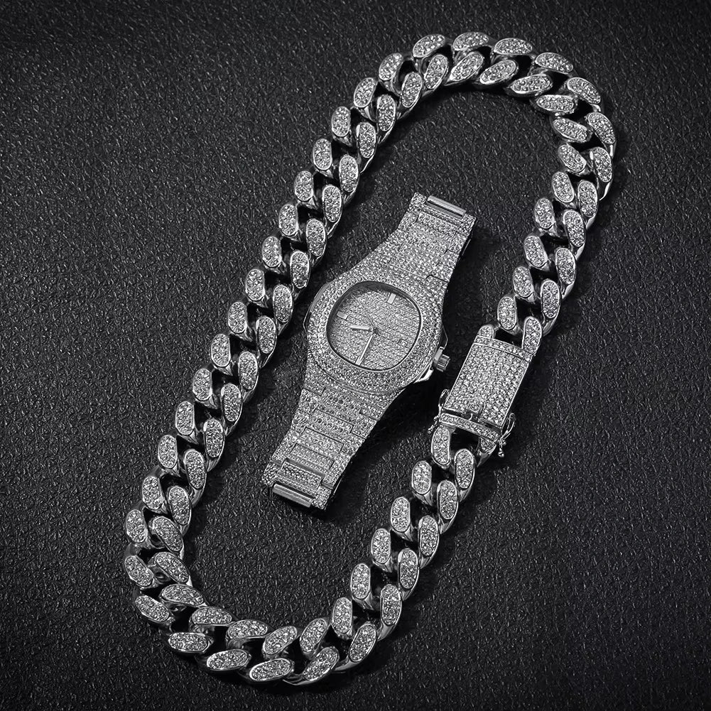Hip-Hop Set Options: Iced-Out Chain, Bracelet, Watch