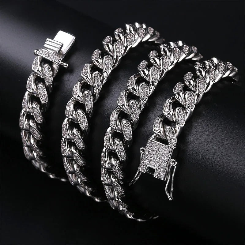 Make a statement with the ICE STONE Iced Out Cuban Link Chain, a bold, luxurious piece that blends the best of Miami Gold style and hip hop jewelry. Crafted with a durable copper base and plated in 18K gold or silver, this iced-out chain features stunning Zircon stones that catch the light from every angle. Whether you're looking to elevate your own collection or buy in bulk, this wholesale Cuban link chain is perfect for both men and women.