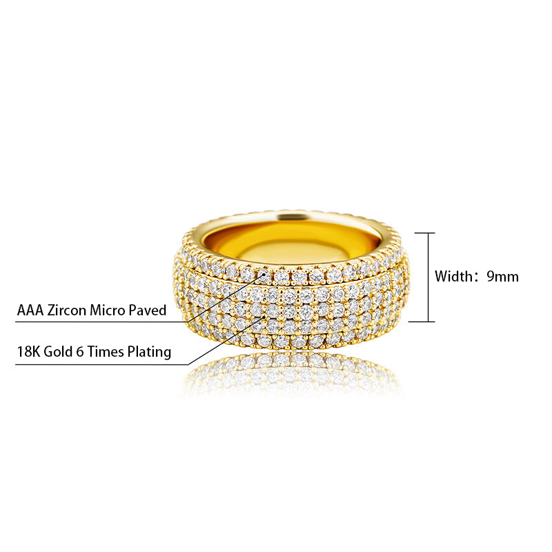 With a solid 9mm profile, five-layer electroplating, and a clean, classic design, this piece delivers luxury and street-ready attitude in one perfect package. Whether you're in the club, on stage, or leveling up your everyday style, this ring hits hard with heavyweight sparkle.