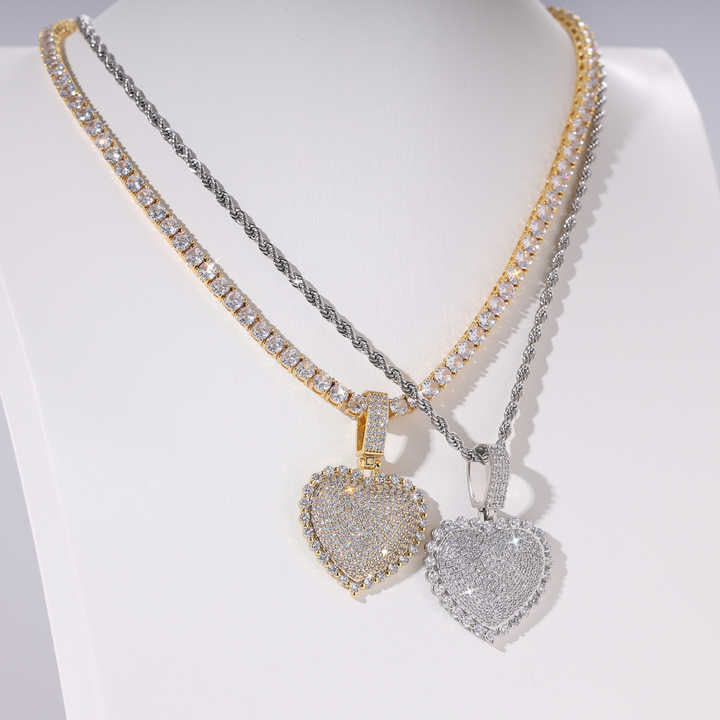 Iced Out Heart Pendant Set – Gold & White Gold Zircon Tennis Chain by ICE STONE