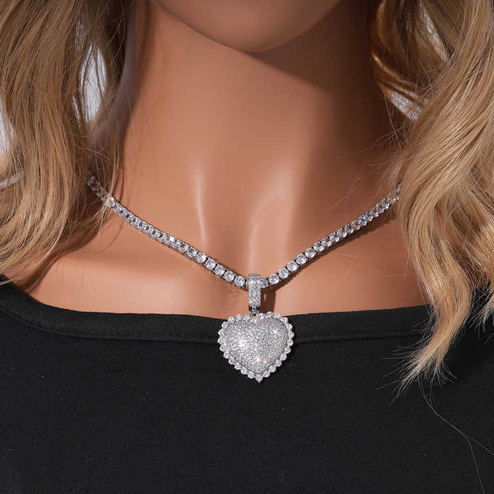 Turn heads and show love with this Iced Out Heart Pendant Set—a dazzling fusion of romance and street style. Designed to stand out, this unisex jewelry set features a cute, bold heart pendant encrusted with sparkling zircon stones, perfectly paired with a matching tennis link chain for maximum shine.