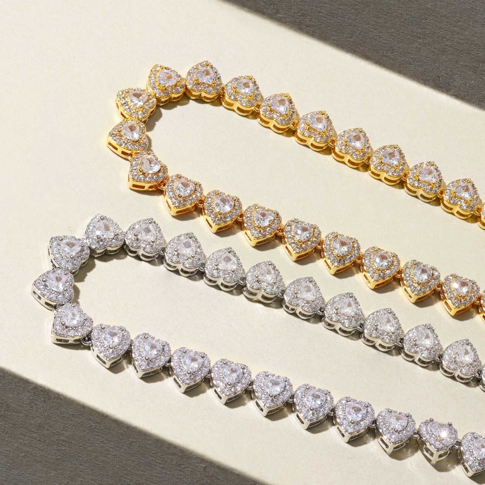 Turn up the charm with the ICE STONEHeart-Shaped Tennis Chain – a unique blend of romance and hip hop edge. This standout piece swaps the traditional tennis chain silhouette for dazzling heart-shaped stones, creating a bold yet feminine design that’s perfect for making a statement.