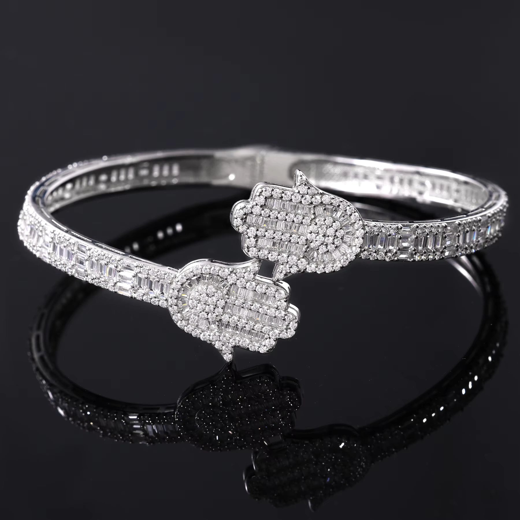 High Quality Hip Hop Jewelry Iced Out Hamsa Hand Bangle Bracelet 925 Sterling Silver Baguette Moissanite Diamond Bangle