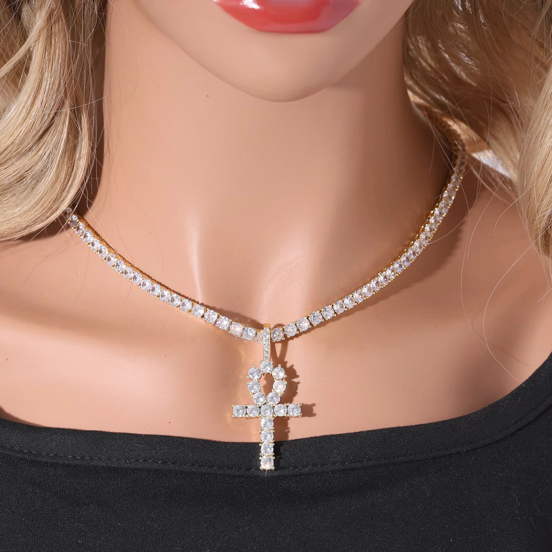 Hip Hop 18K Gold Plated CZ Cross Ankh Pendant Necklace Iced Out Egyptian Ankh Zirconia Women Men Jeweries