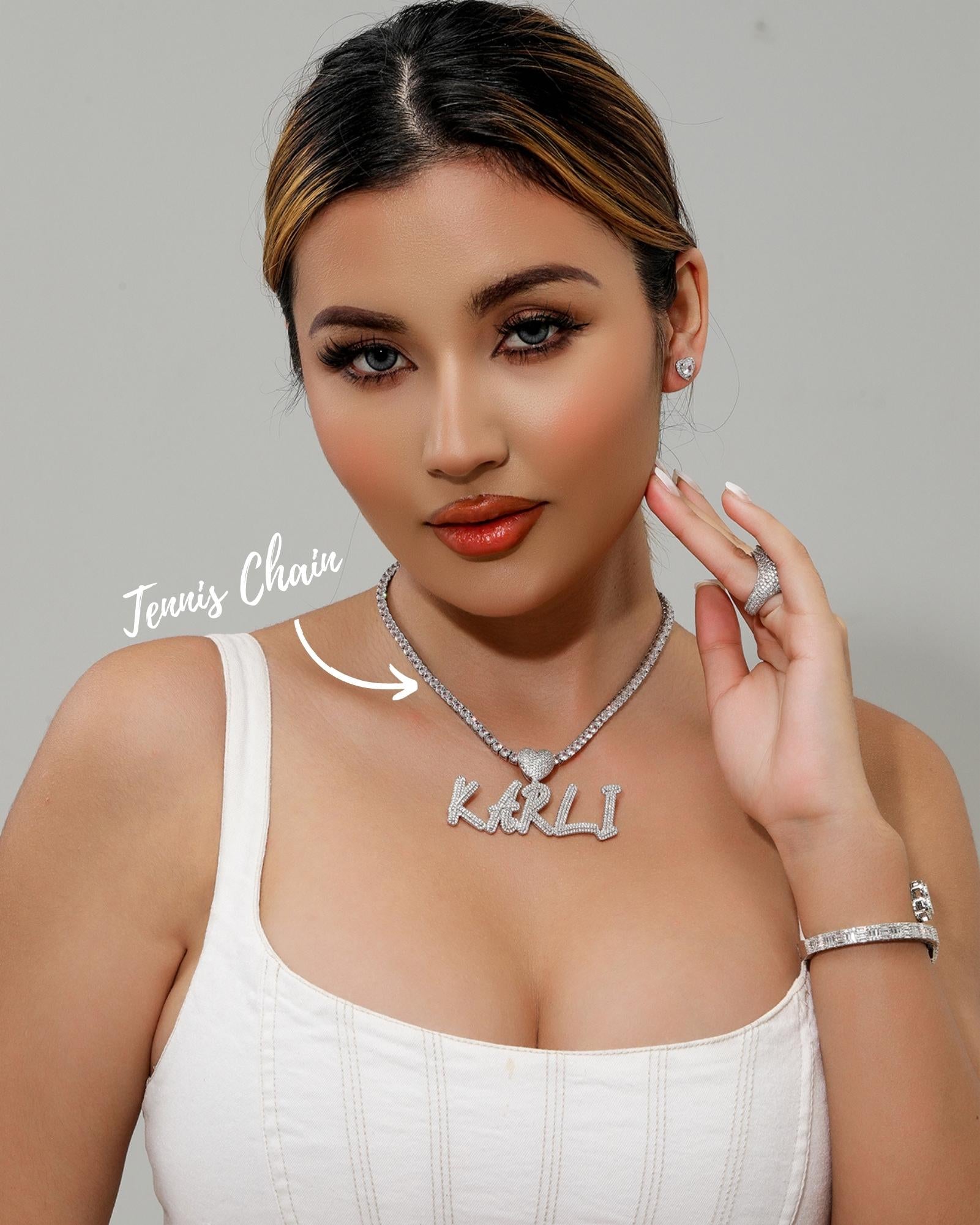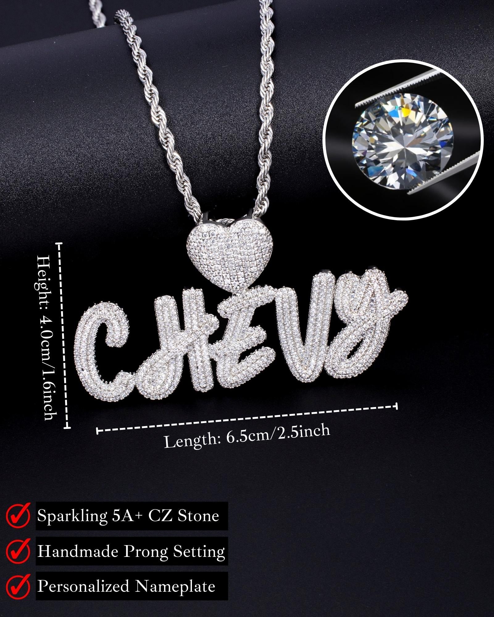 Hip Hop Women Custom Letter Pendant Name Necklace – Iced Out Bling Personalized Heart Necklace Charm, Christmas Gift