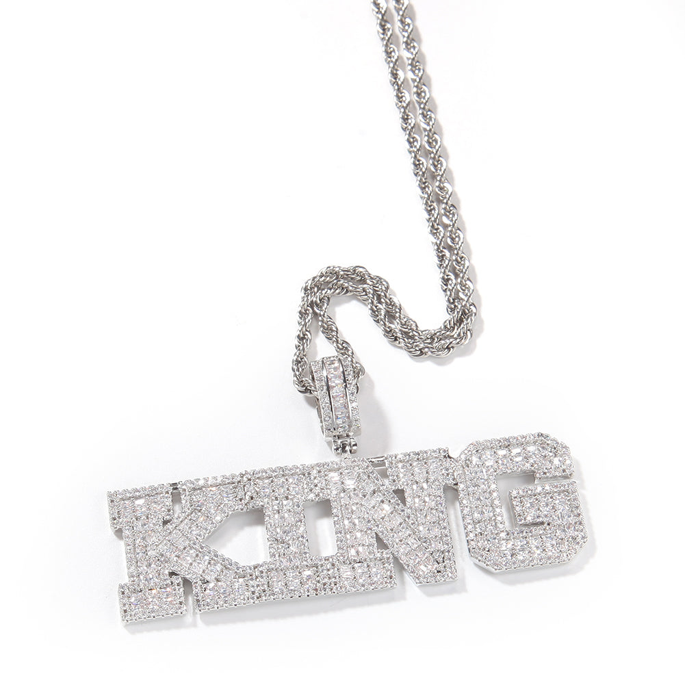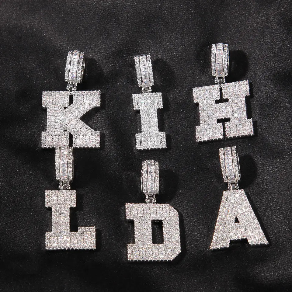 New Items Hip Hop Brass CZ Baguette Letter Pendant Necklace A-Z Initial White Gold/Gold Color Letters Pendant Iced Out Jewelry