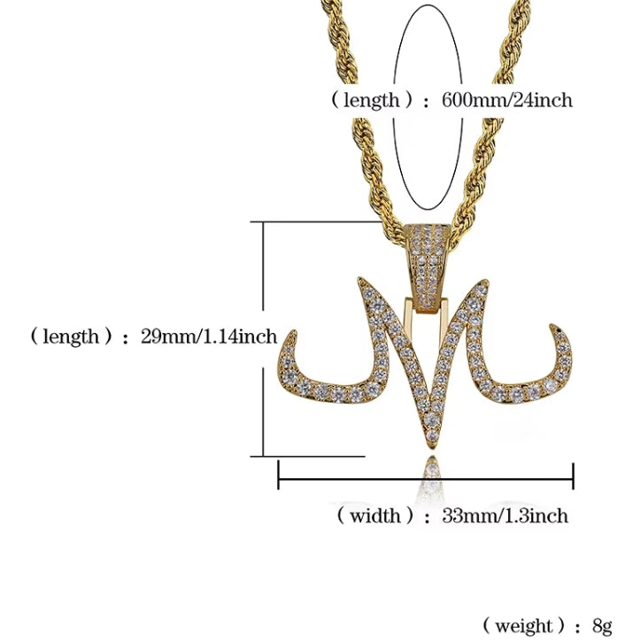 Hip Hop Necklace Dragon Ball Majin Buu Tattoos Marks M Pendant – Micro Pave CZ Iced Out Chain Jewelry Gift for Men & Women