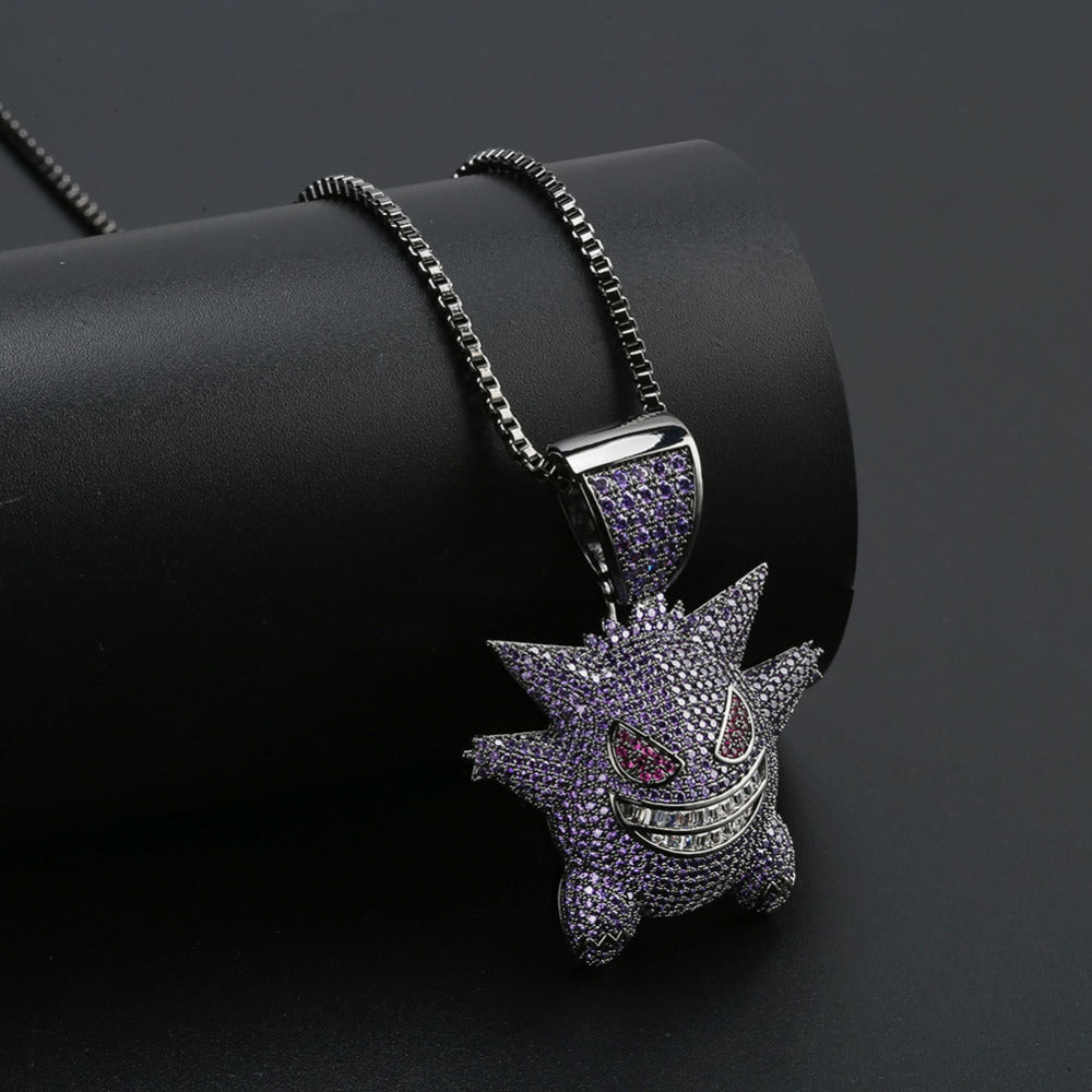 Add this iced-out Gengar mask pendant to your collection and bring a playful yet bold statement to your jewelry game. Perfect for the true hip hop enthusiast!