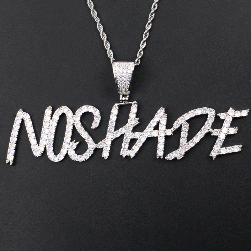 Hip Hop Iced Out Personalized Necklace – Custom Big Size Cursive Letter Pendant with 18K Gold Plating