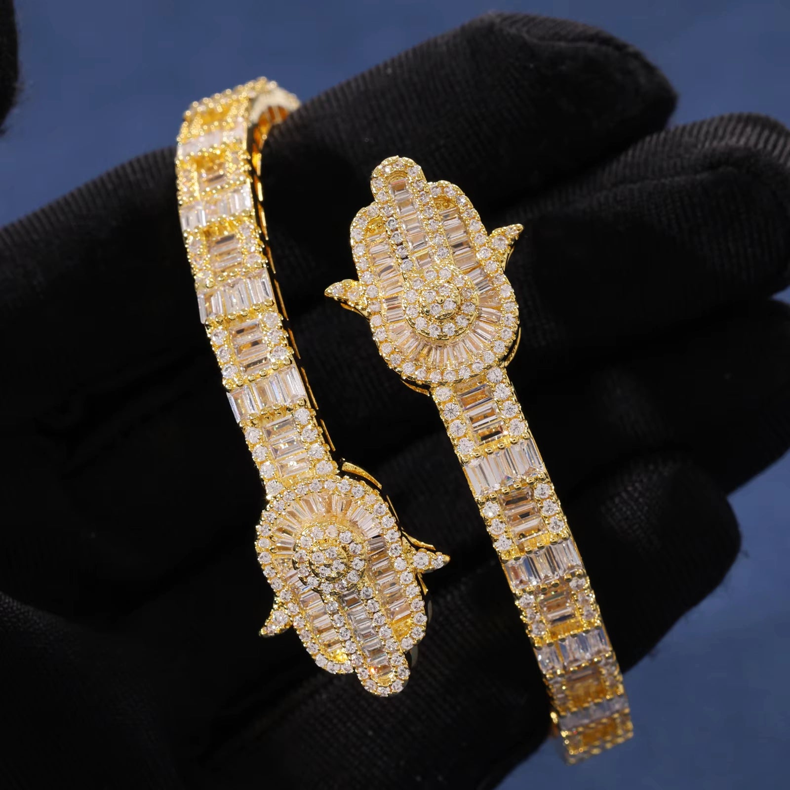 HipHop Retro Cool Trend Hand Jewelry Chains Men's Fashion Wrap Bracelets with Zircon Palm Personalized Hand Fatima Bracelets