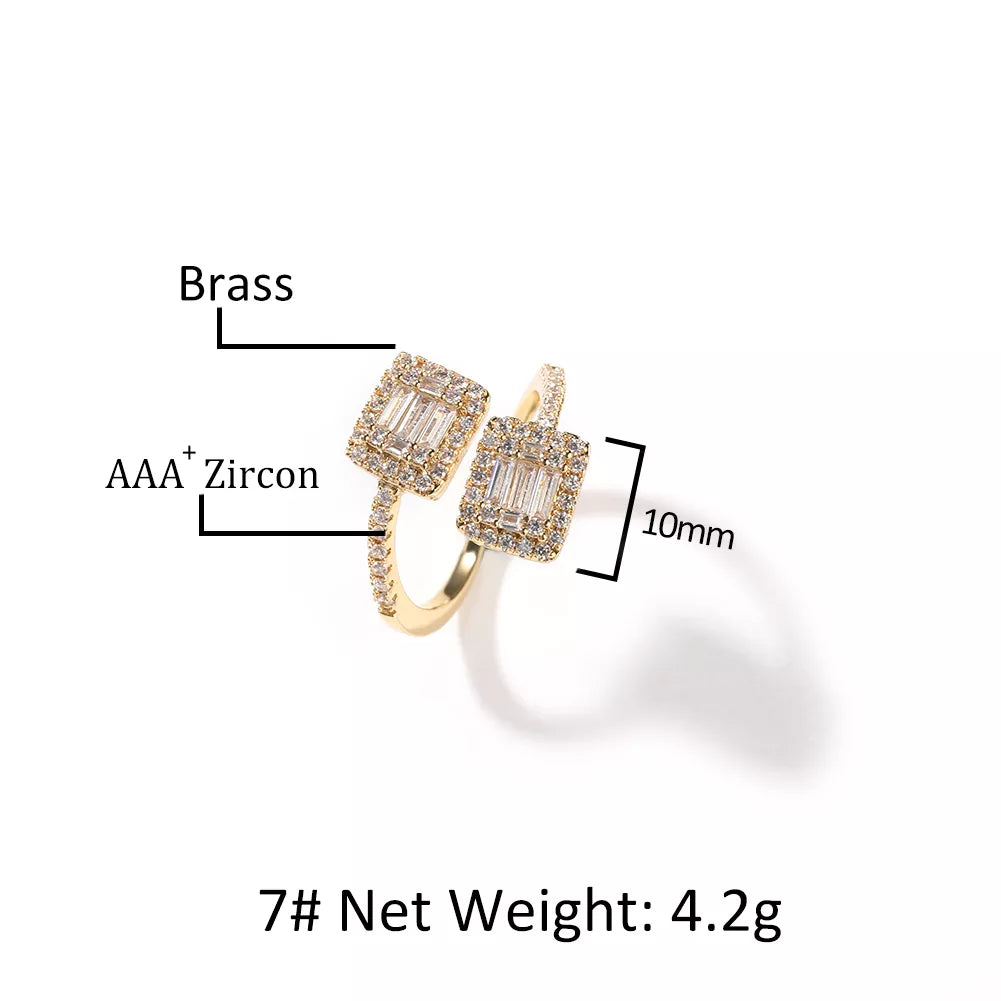 Turn up your style with the ICE STONE Square Diamond Ring, a bold and brilliant piece designed for those who love hip-hop luxury. Made from environmental brass copper and inlaid with AAA+ cubic zirconia, this ring brings maximum shine with a sleek micro pave setting. The square diamond cluster design offers a modern, iced-out look — perfect for parties, performances, and everyday flexing.
