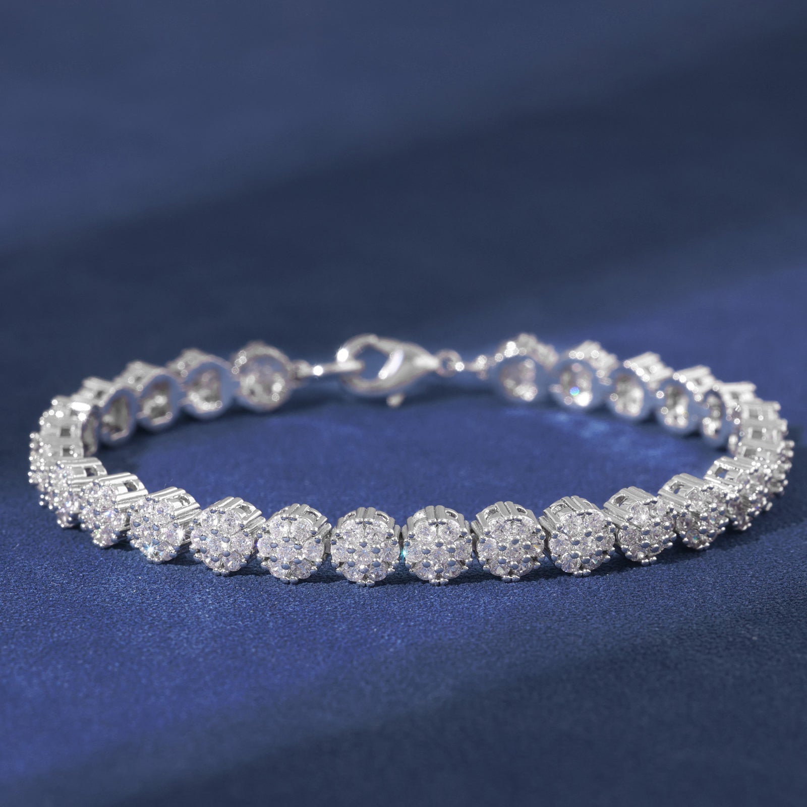 Turn heads and blossom in bold style with the ICE STONE Flower Power Tennis Bracelet, a dazzling 8mm piece that combines floral elegance with icy hip hop flair. Featuring sparkling 5A oval-cut zircon stones arranged in a delicate flower pattern, this bracelet delivers a fresh take on luxury streetwear.