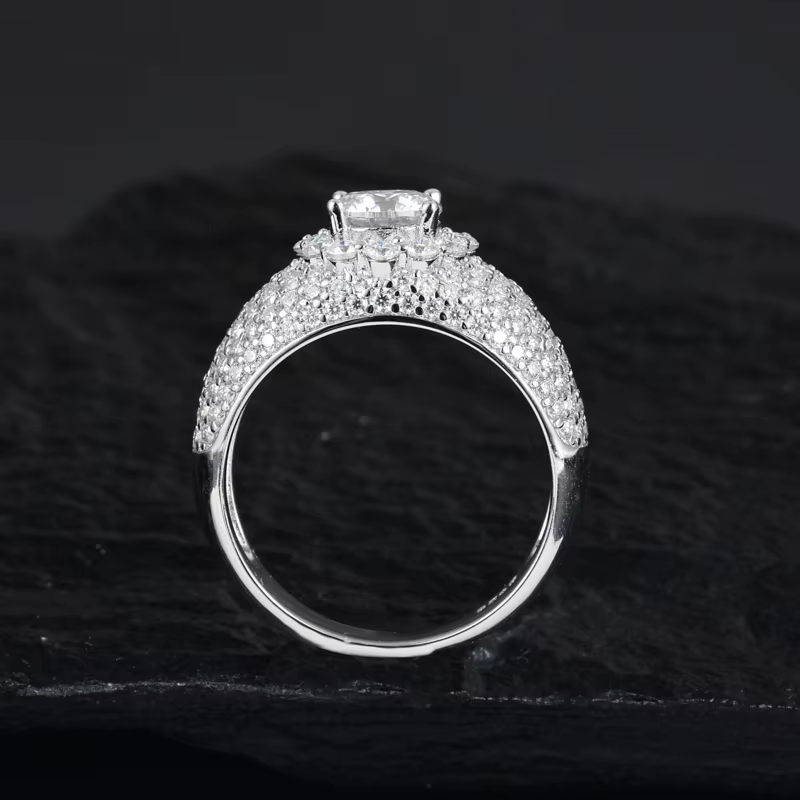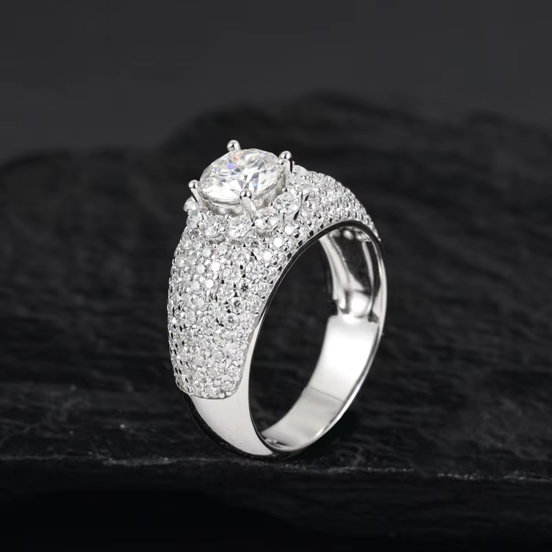 Iced Out Round Moissanite Ring – 925 Sterling Silver Hip Hop Rapper Jewelry by ICE STONE