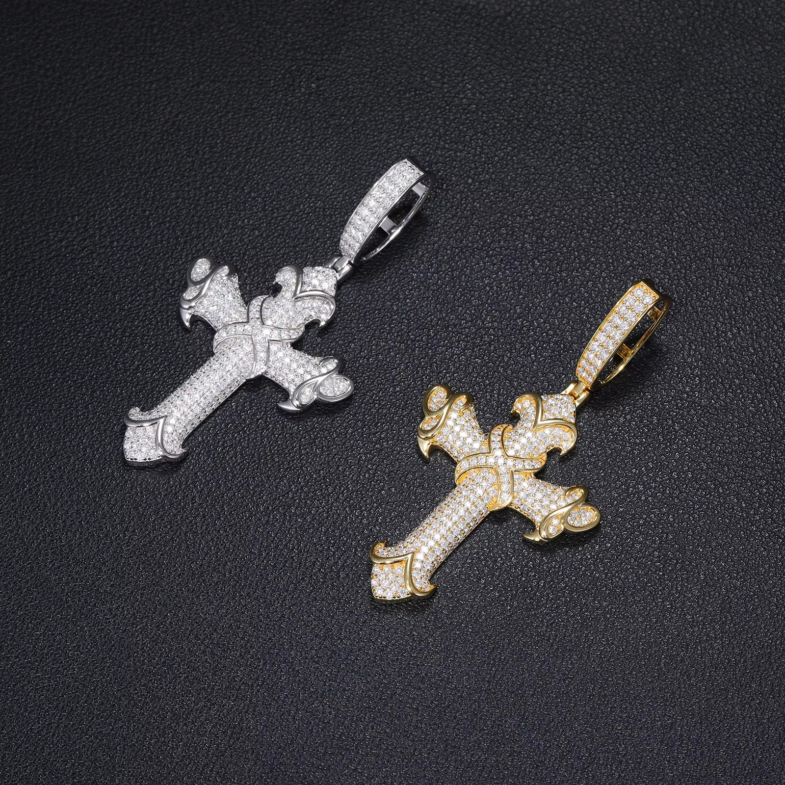The iconic cross shape is elevated with GRA-certified moissanite for a diamond-like sparkle that turns heads at any party or special event. Each stone is claw-set to ensure maximum brilliance and secure wear, while the high-polish finish comes in your choice of silver or gold plating. With optional mold and sample making services, you can even customize this pendant to fit your unique vision or brand.