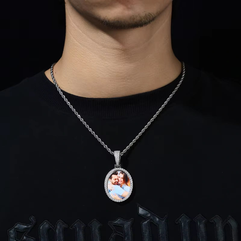 Iced Out 925 Sterling Silver VVS D Moissanite Oval Picture Pendant Luxury Custom Photo Pendant Jewelry for Gift Party
