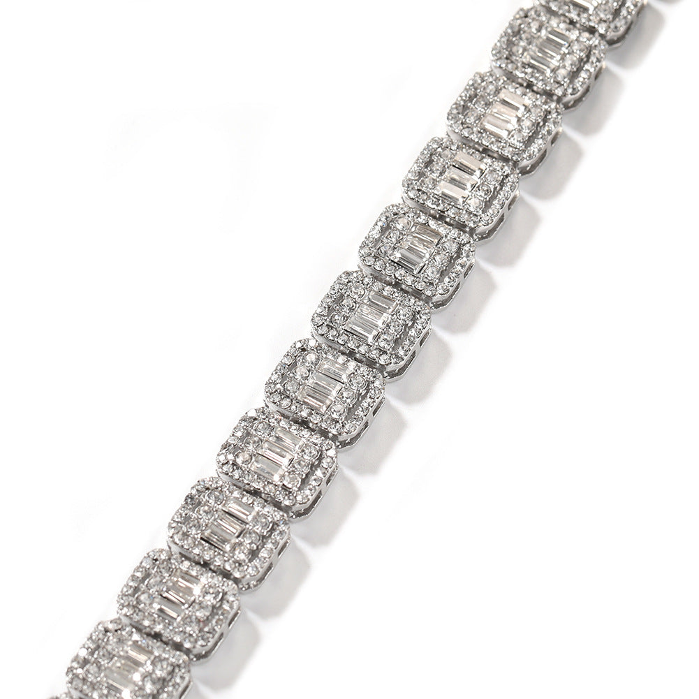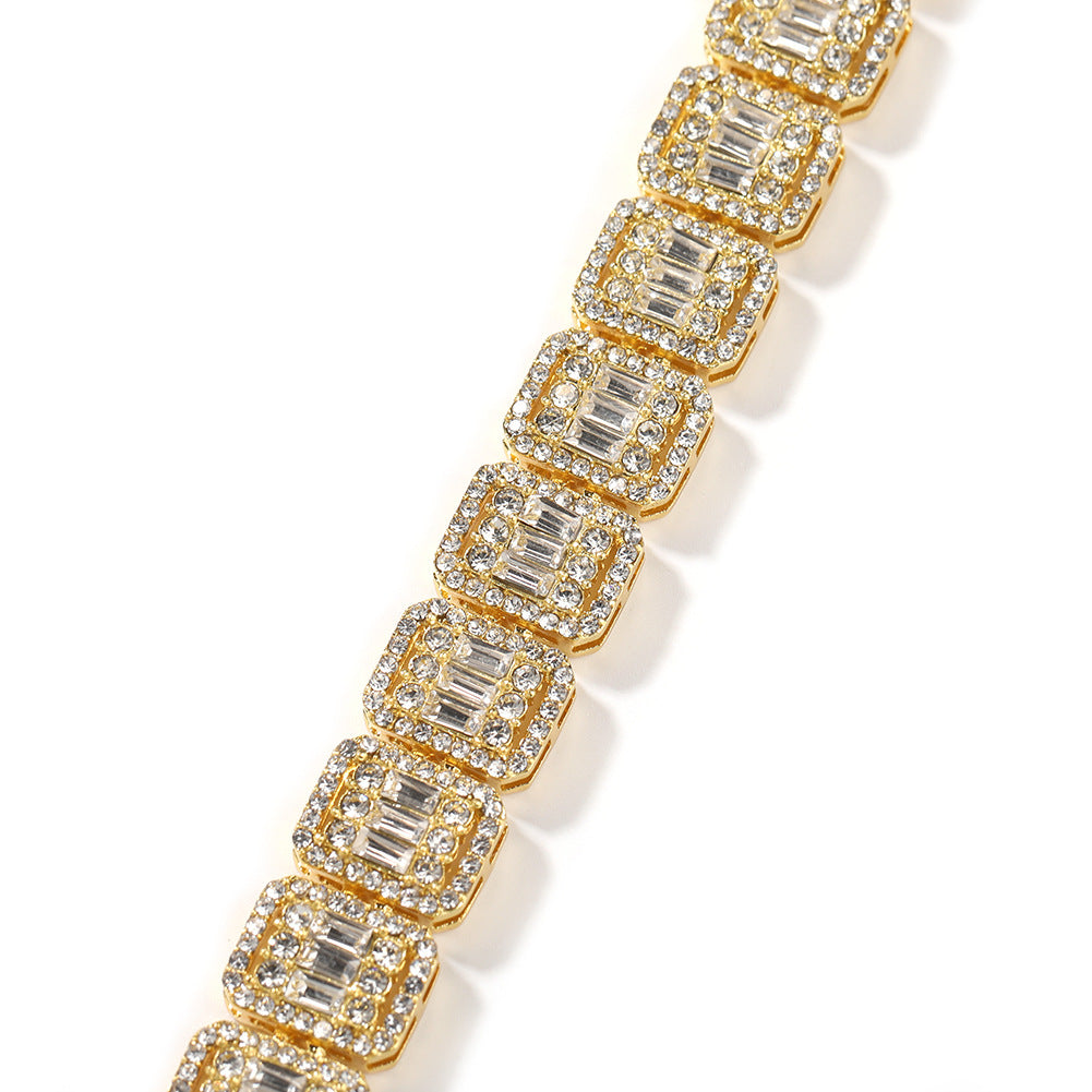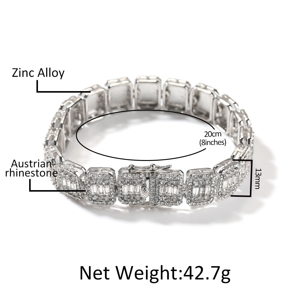 Hip Hop Iced Out Baguette Diamond Bracelets Luxury Shining Full Diamond Alloy Bangles 18K Gold Plated Women Men