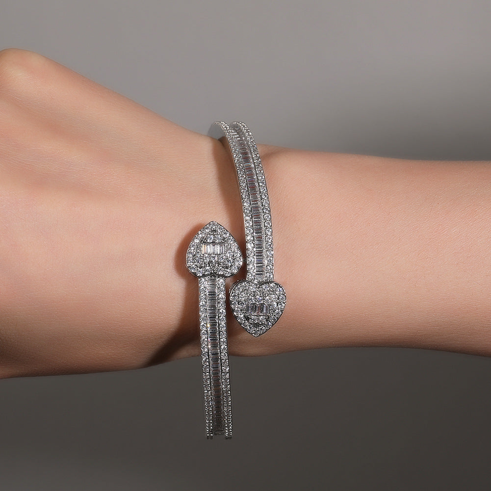 ICE STONE Iced Out Baguette Diamond Heart Bracelet – Fine Women’s Jewelry Bling Love Heart Bangle with 18K Gold Plating