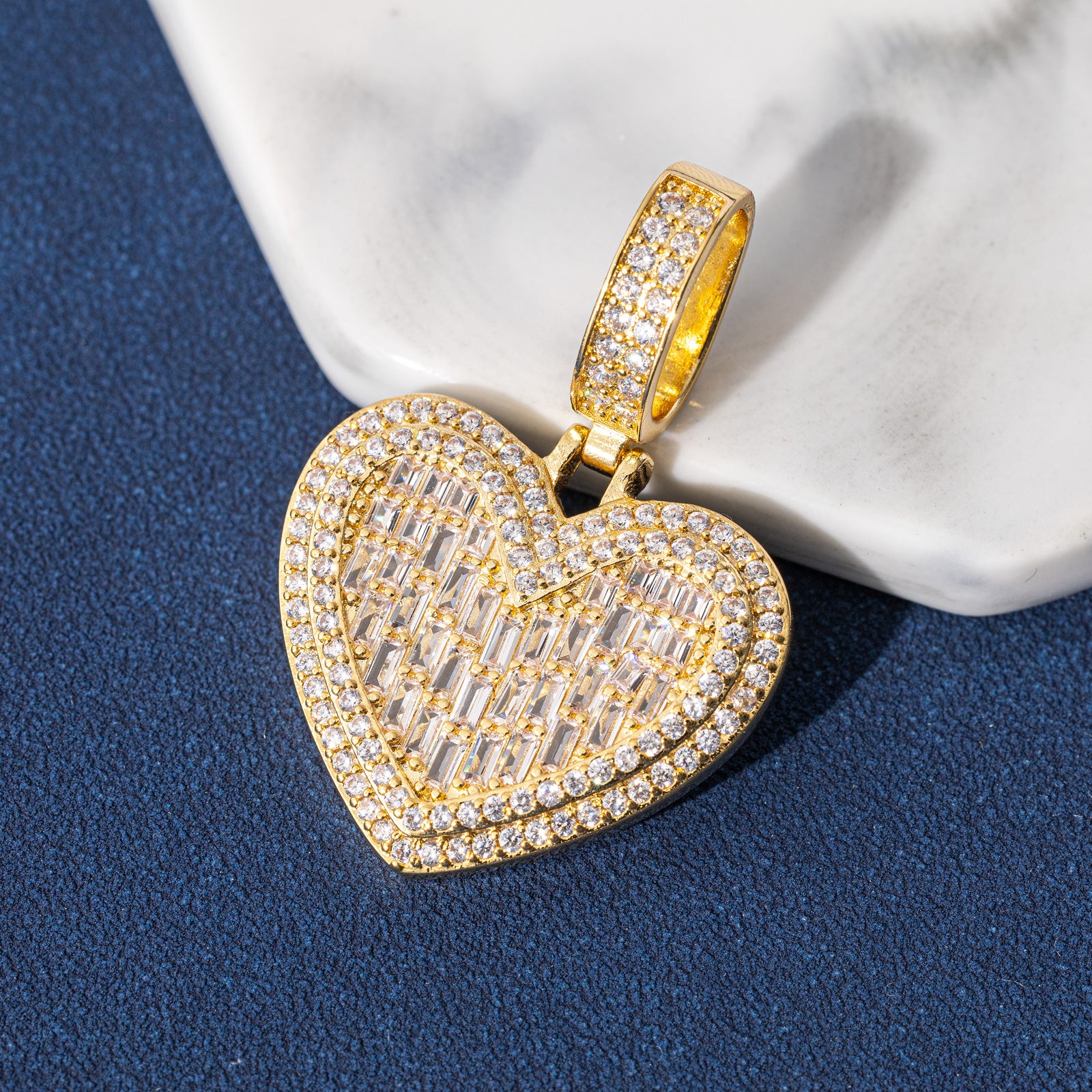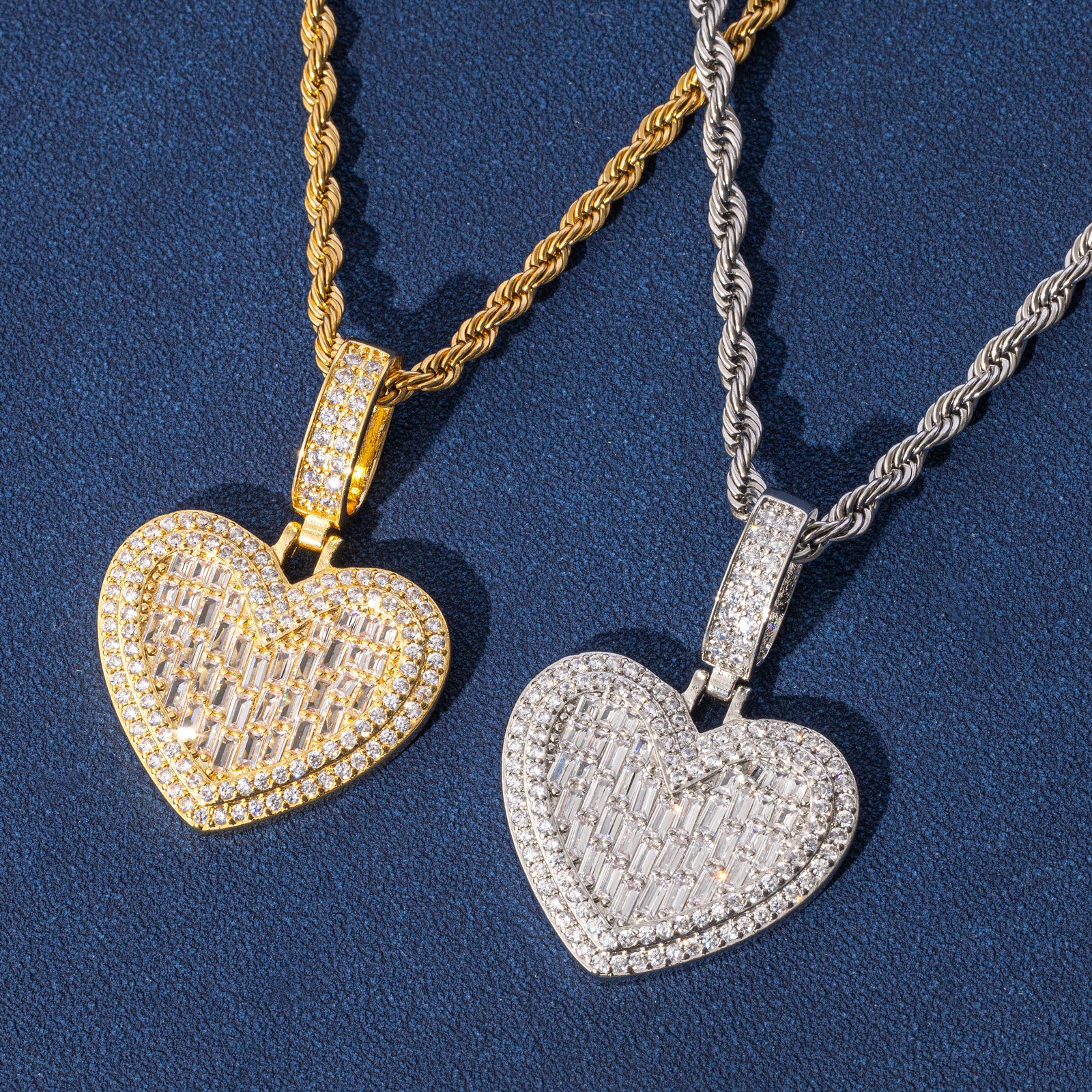 ICE STONE Iced Out Baguette Heart Pendant Necklace – 18K Gold Plated CZ Statement Jewelry for Women