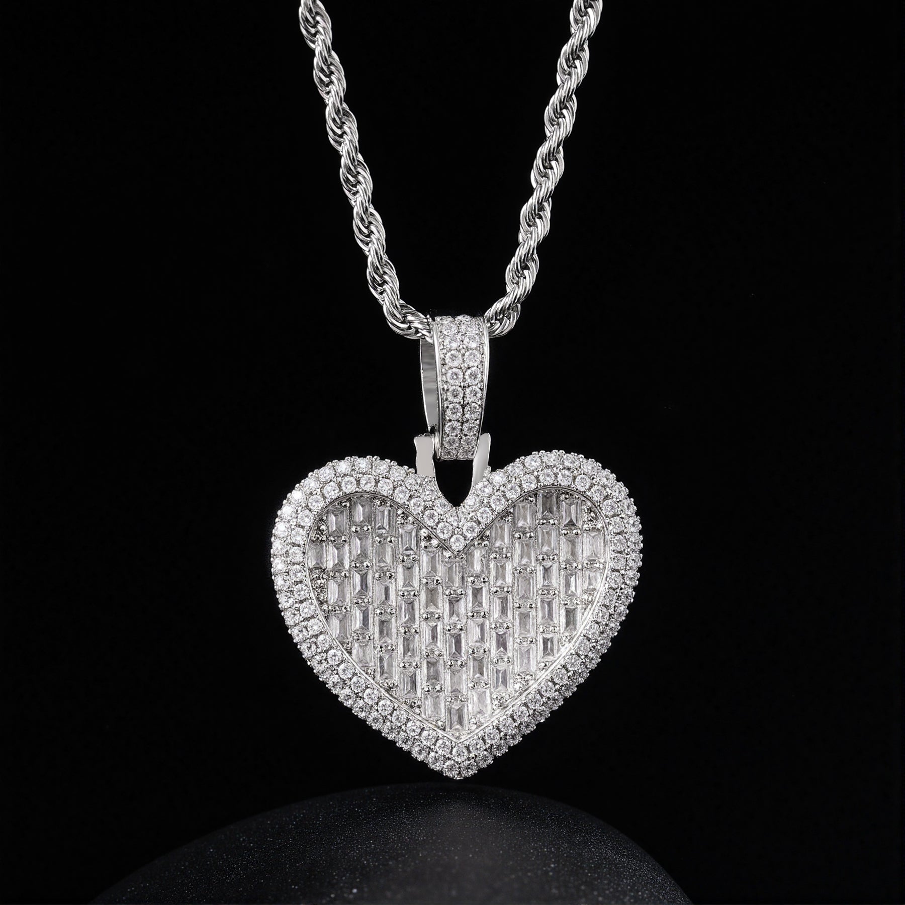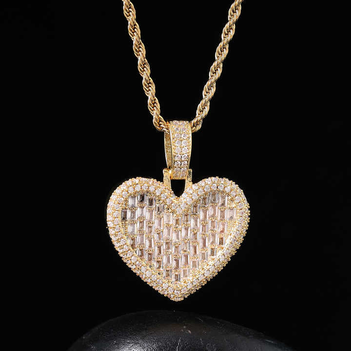 ICE STONE Iced Out Baguette Small Heart Pendant Necklace | 18K Gold Plated CZ Fashion Jewelry