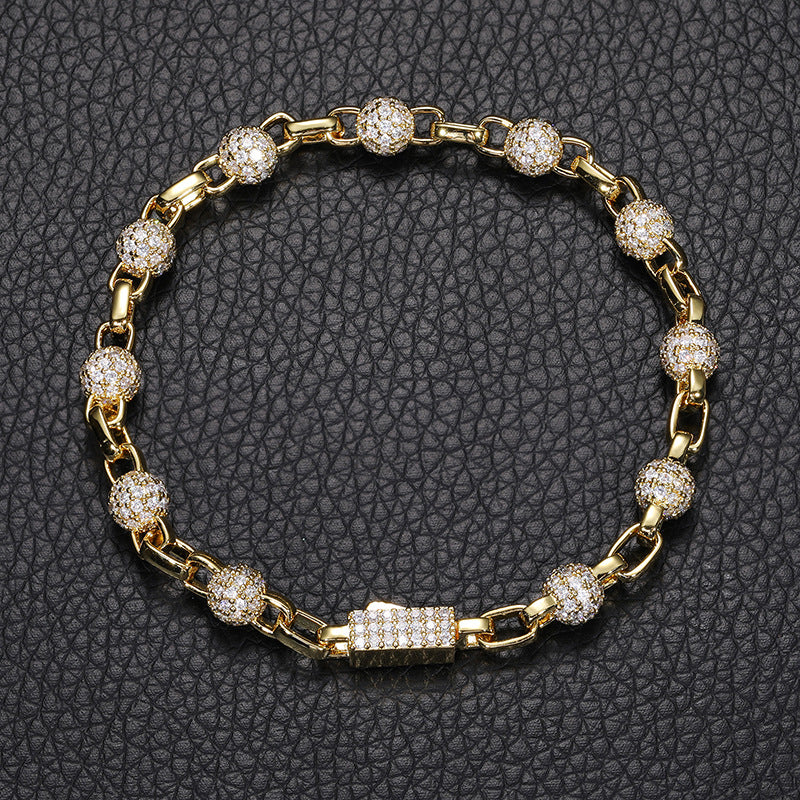 ICE STONE Iced Out Beaded Bracelet – 6mm Ball Chain Hip Hop Jewelry for Men, 18K Gold Plated with 5A CZ
