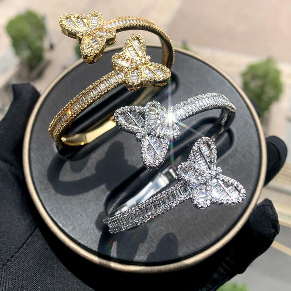 ICE STONE Butterfly Iced-Out Jewelry Set – Baguette CZ, 18K Gold Plated, Bling Bangle & Ring Combo
