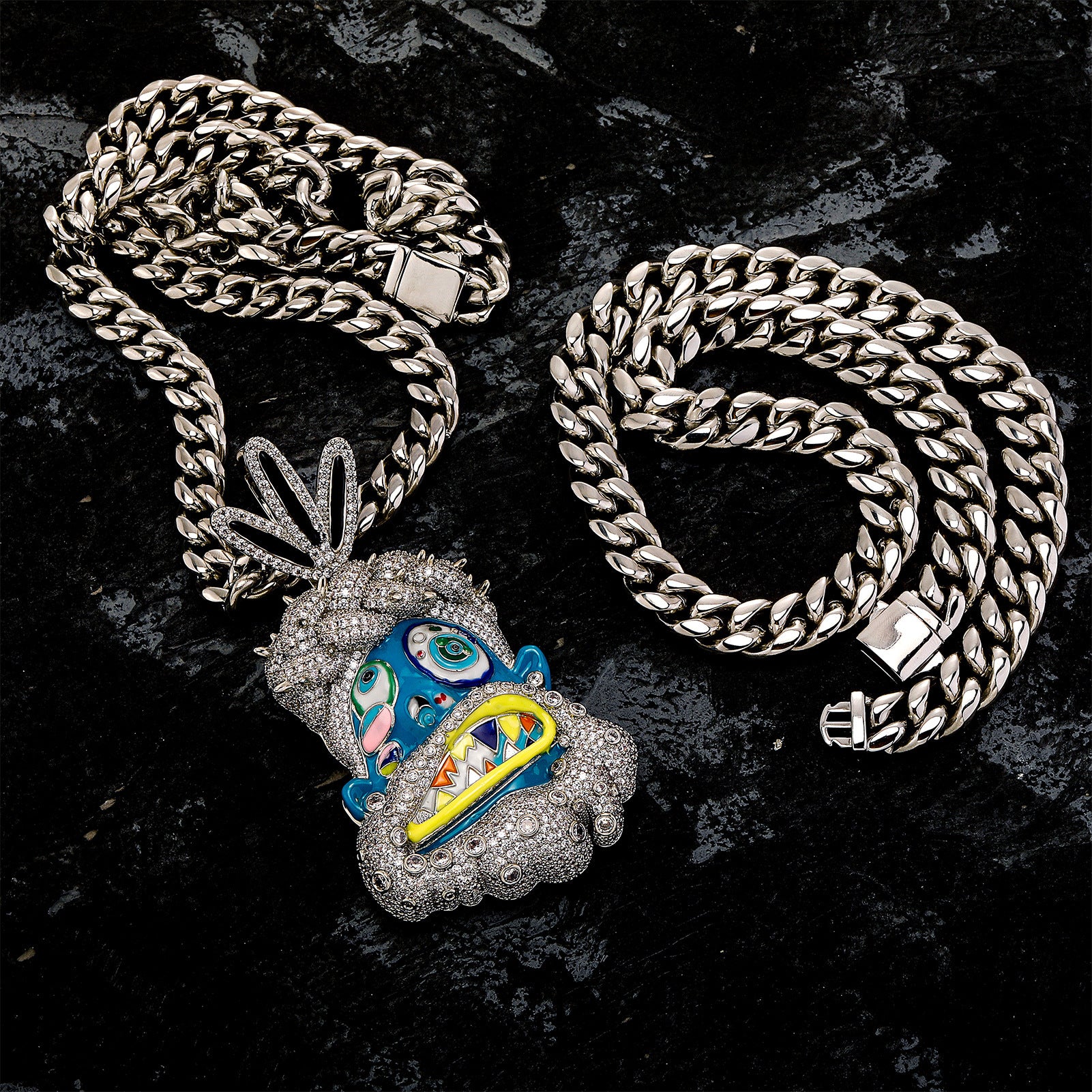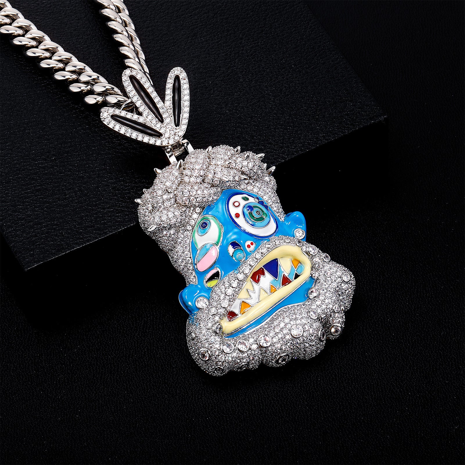 Add a bold, stylish statement to your collection with the Icy Iced Out Cartoon Full Diamond Pendant Necklace. Crafted from brass, plated with 18K gold, and set with dazzling zircon stones, this pendant is the perfect accessory for those who love hip hop jewelry with a playful twist. The cartoon-inspired design is fully iced out, giving it an extravagant look that shines with every movement.