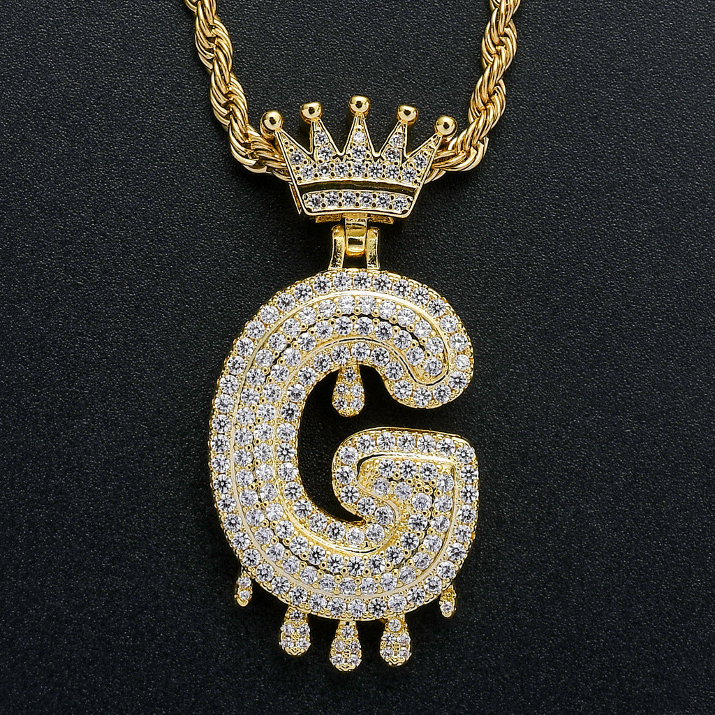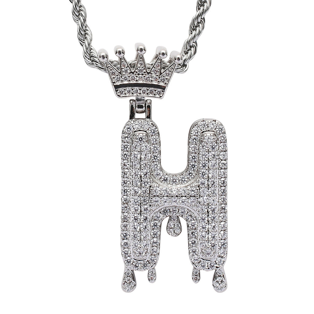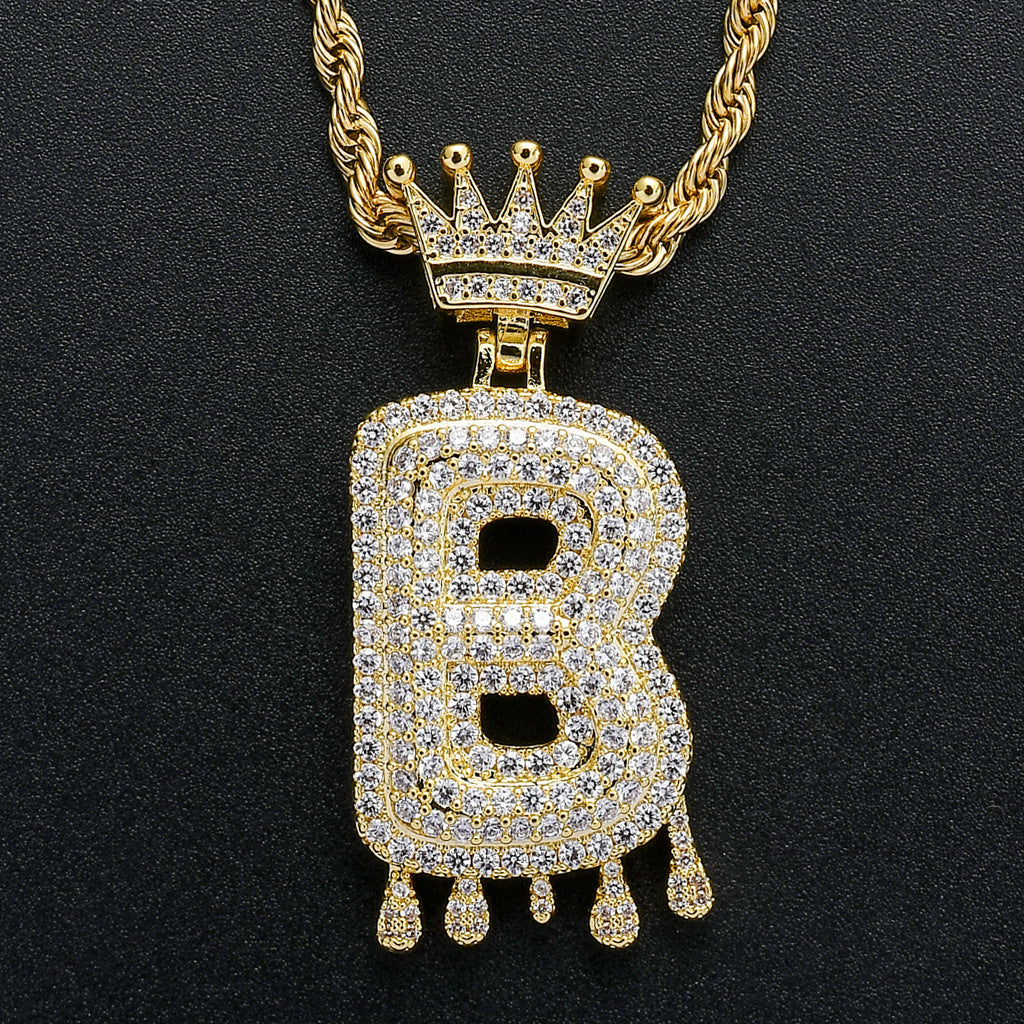 Hot-Selling Bling Iced Out Crown Initial Letter Necklace – Bubble Letter Pendant by ICE STONE