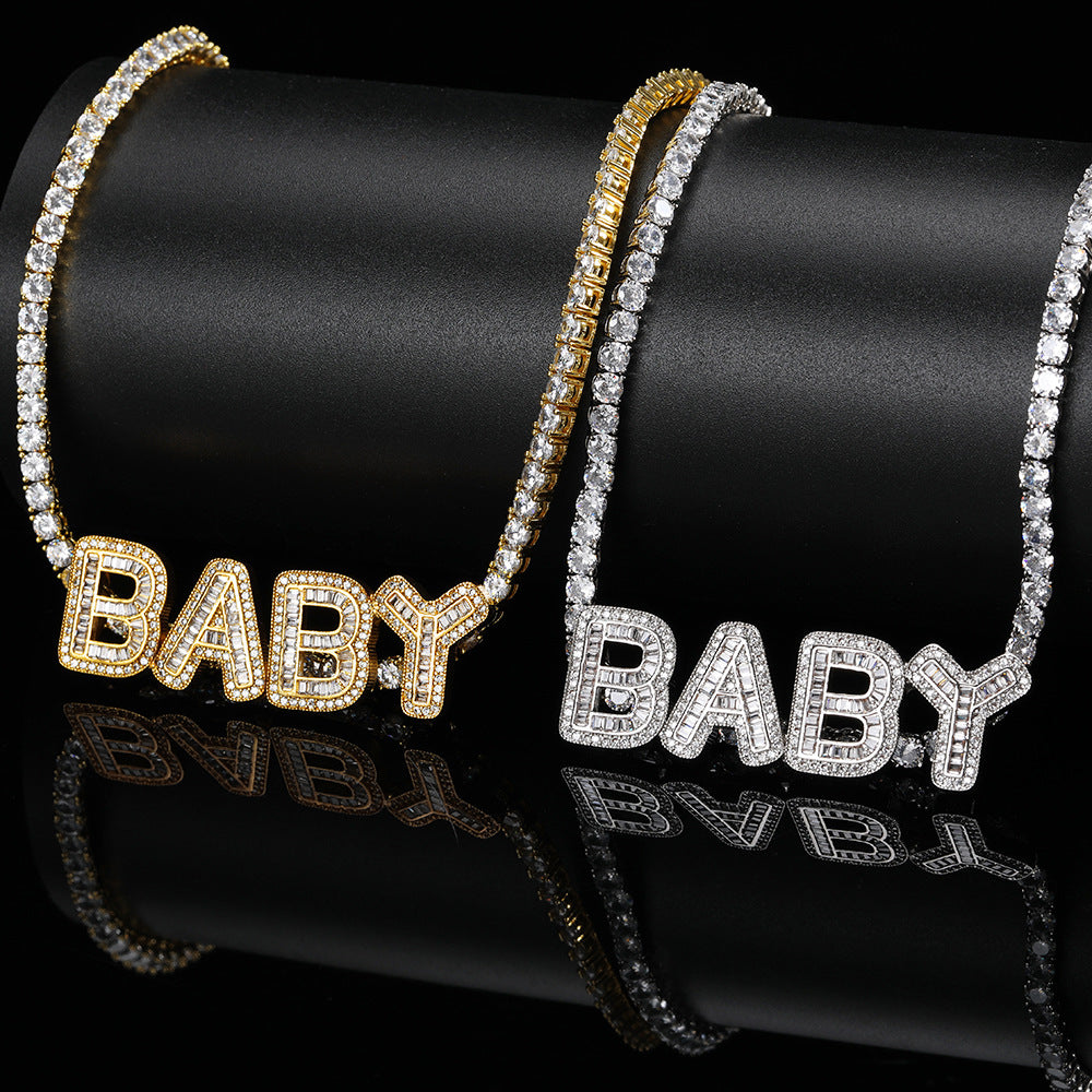Available in gold, silver, and rose red finishes, this necklace is customizable with any letter of your choice, making it a unique gift for anniversaries, engagements, parties, weddings, or as a fashion-forward accessory. The iced-out design, paired with micro-insert technology, ensures each cubic zirconia stone stays securely in place, adding a luxurious touch to this hip-hop-inspired piece.