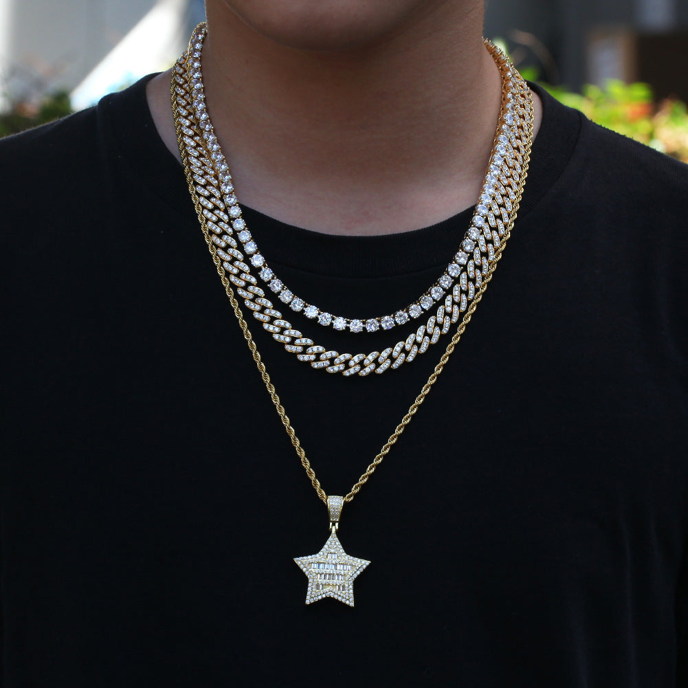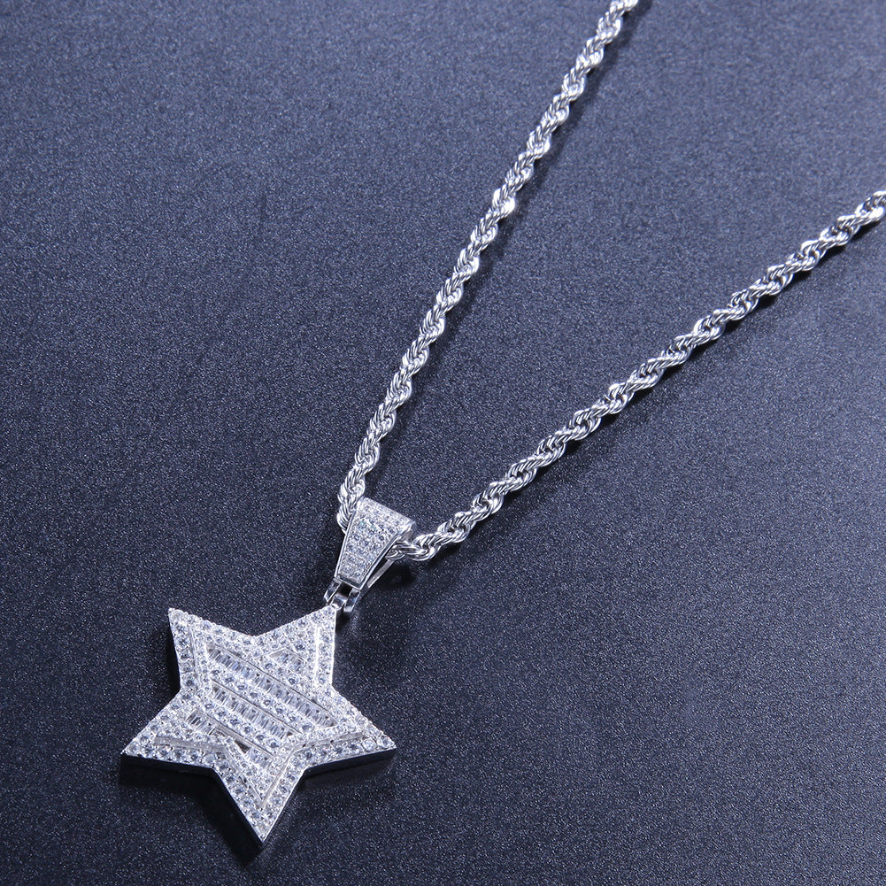Copper Brass 14k Gold White Gold Thick Plating AAA Cubic Zircon Micro Setting Star Five Star Pendant Necklace Iced Out