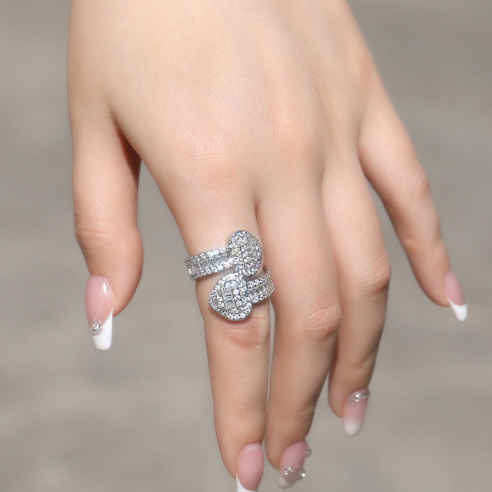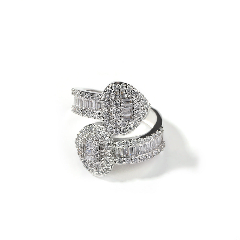 Turn on the charm and the shine with the ICE STONE, a double-heart bracelet and ring set that brings love and luxury together in true iced-out fashion. Covered in dazzling 5A baguette and round-cut cubic zirconia, this set delivers the look of real diamonds with every flick of the wrist.