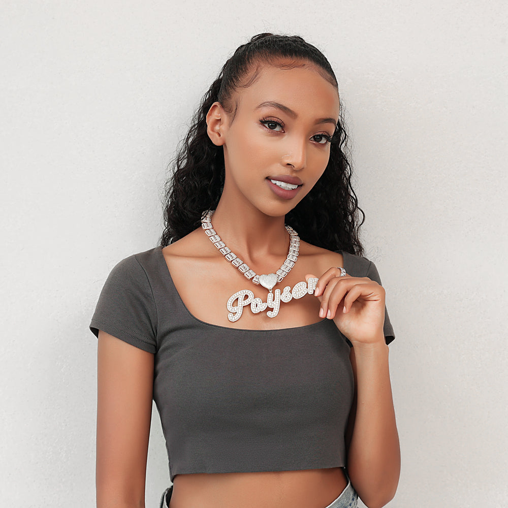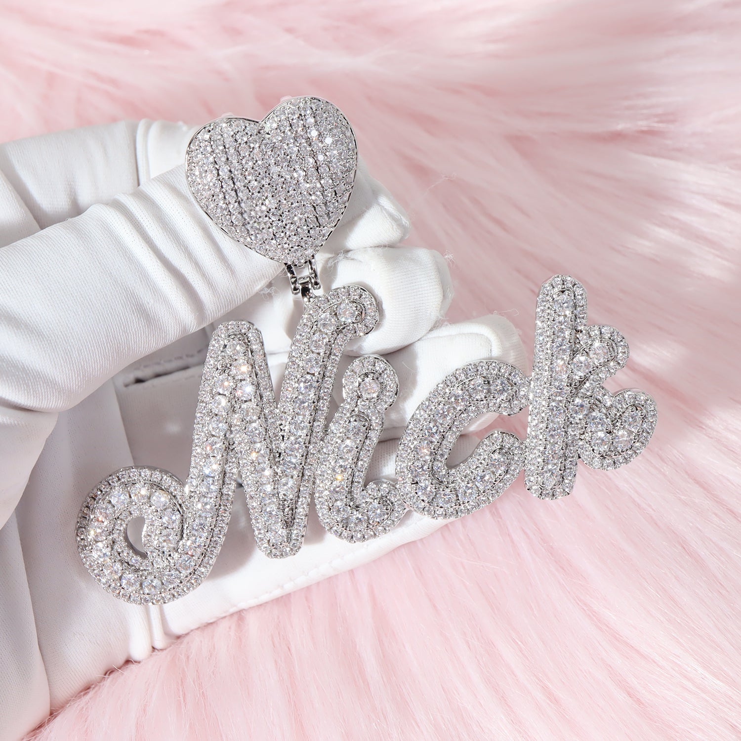 Say your name in serious style with the Name Jewelry Iced Out Heart Hook Necklace — a fashion-forward statement piece blending high-drip hip hop aesthetics with personal flair. Designed with a heart hook clasp and shimmering custom letter pendant, this necklace is fully iced out in 5A cubic zirconia stonesfor a shine that won’t quit.