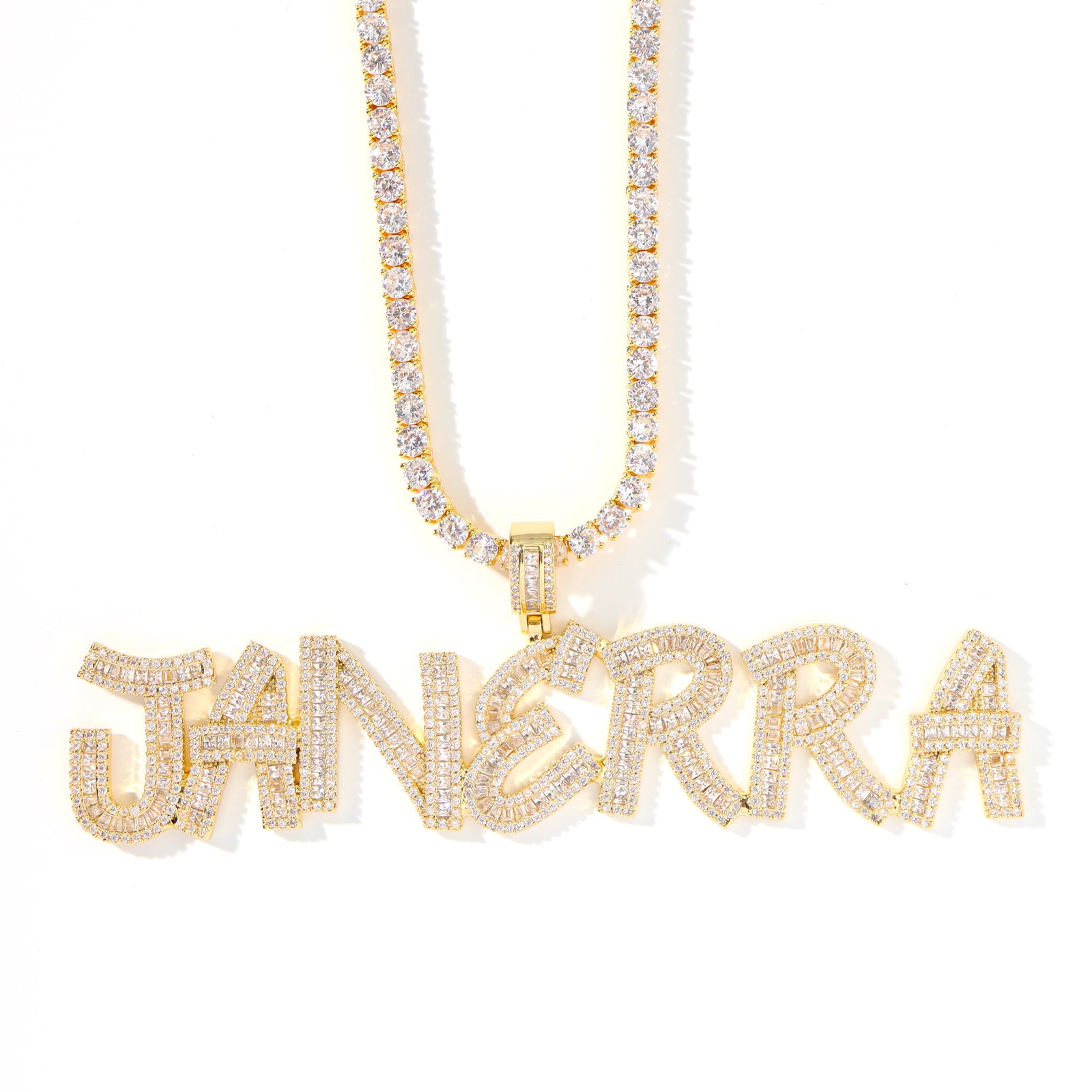 Step up your jewelry game with the Iced Out Initials Nameplate Necklace, a bold hip-hop statement piece crafted to turn heads. Featuring a shimmering iced-out nameplate design with micro-set zircon stones, this unisex pendant blends street style with luxury vibes. Personalize it with your initials or favorite letter to make your fit unforgettable.