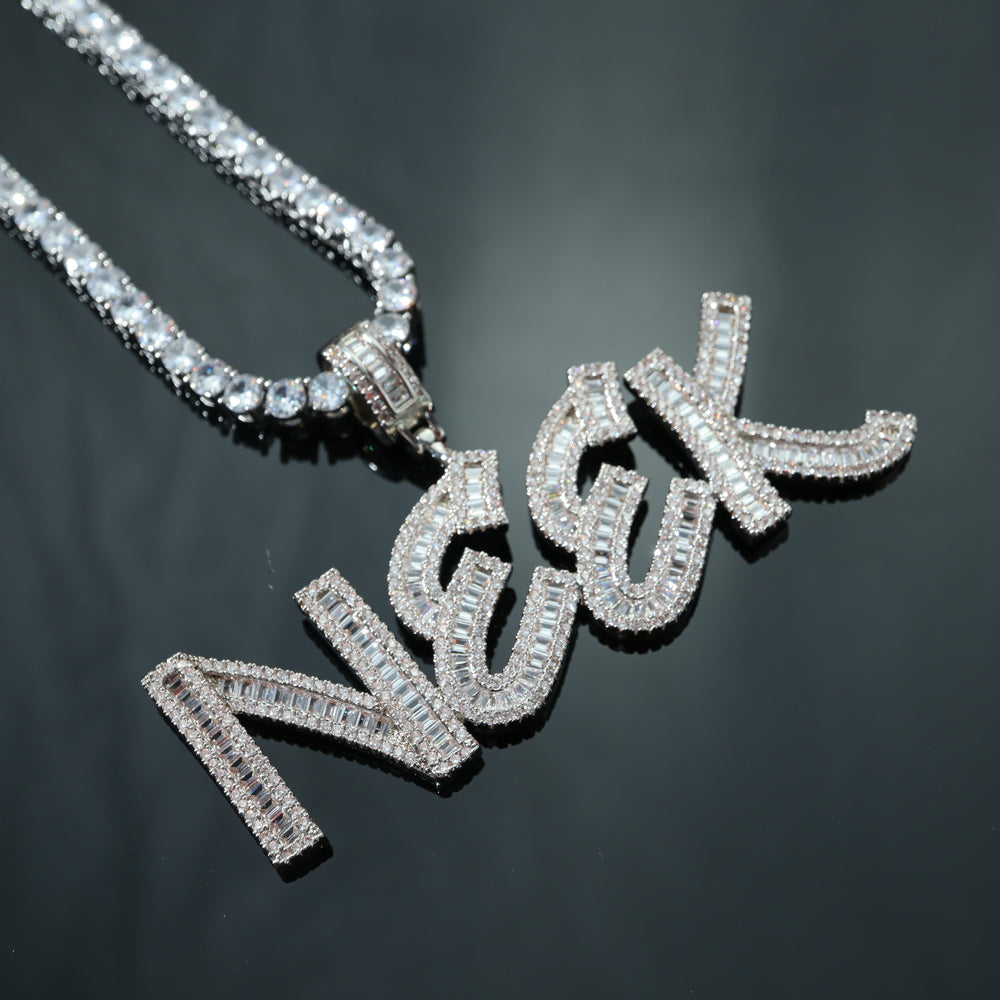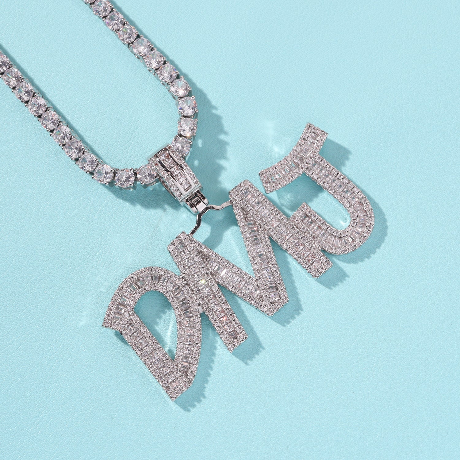 Iced Out Initials Nameplate Necklace – Gold & Silver Bling Custom Pendant for Men & Women