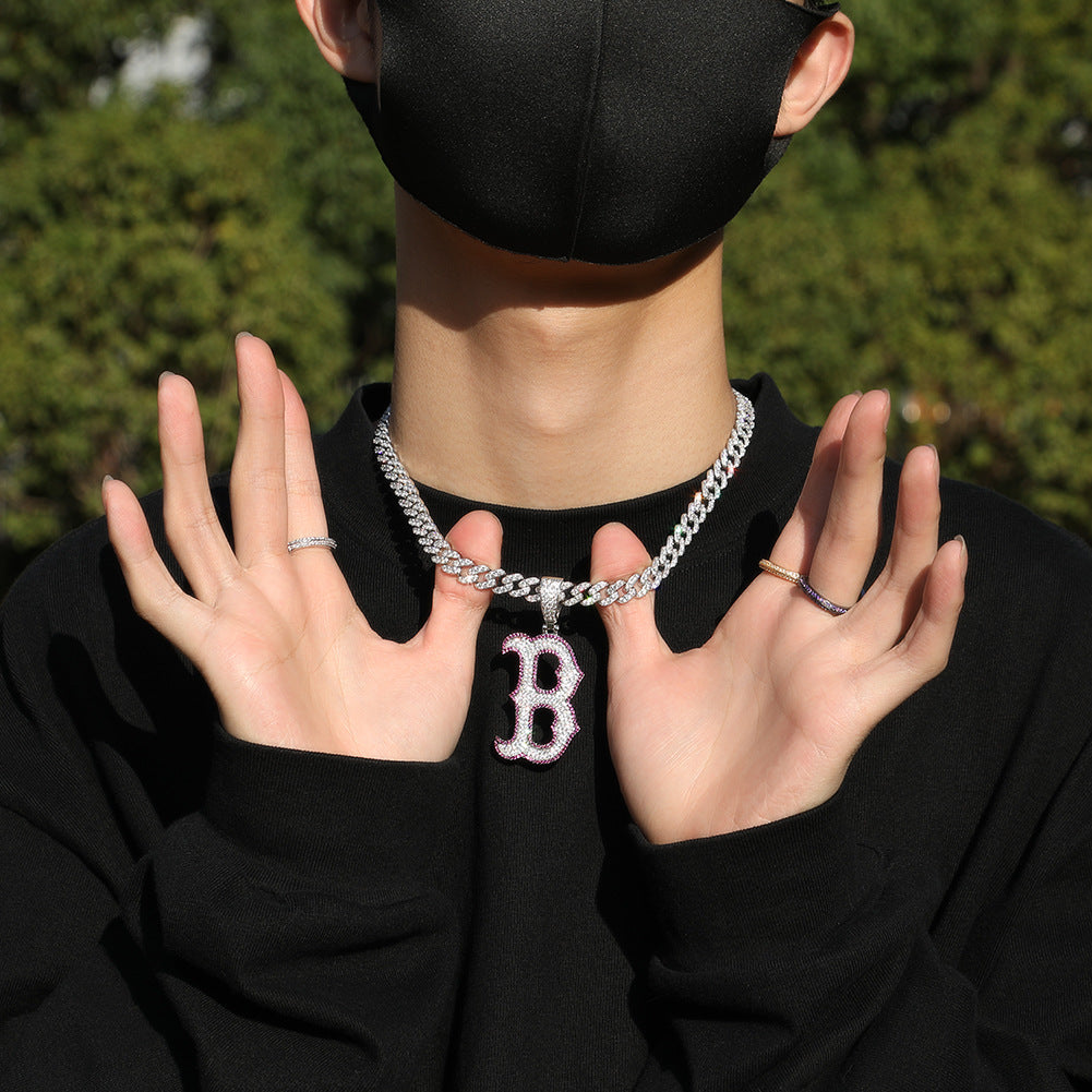 Own your shine with the ICE STONE Iced Out Luminous 'B' Pendant Necklace — a bold, personalized piece that glows with street-style luxury.