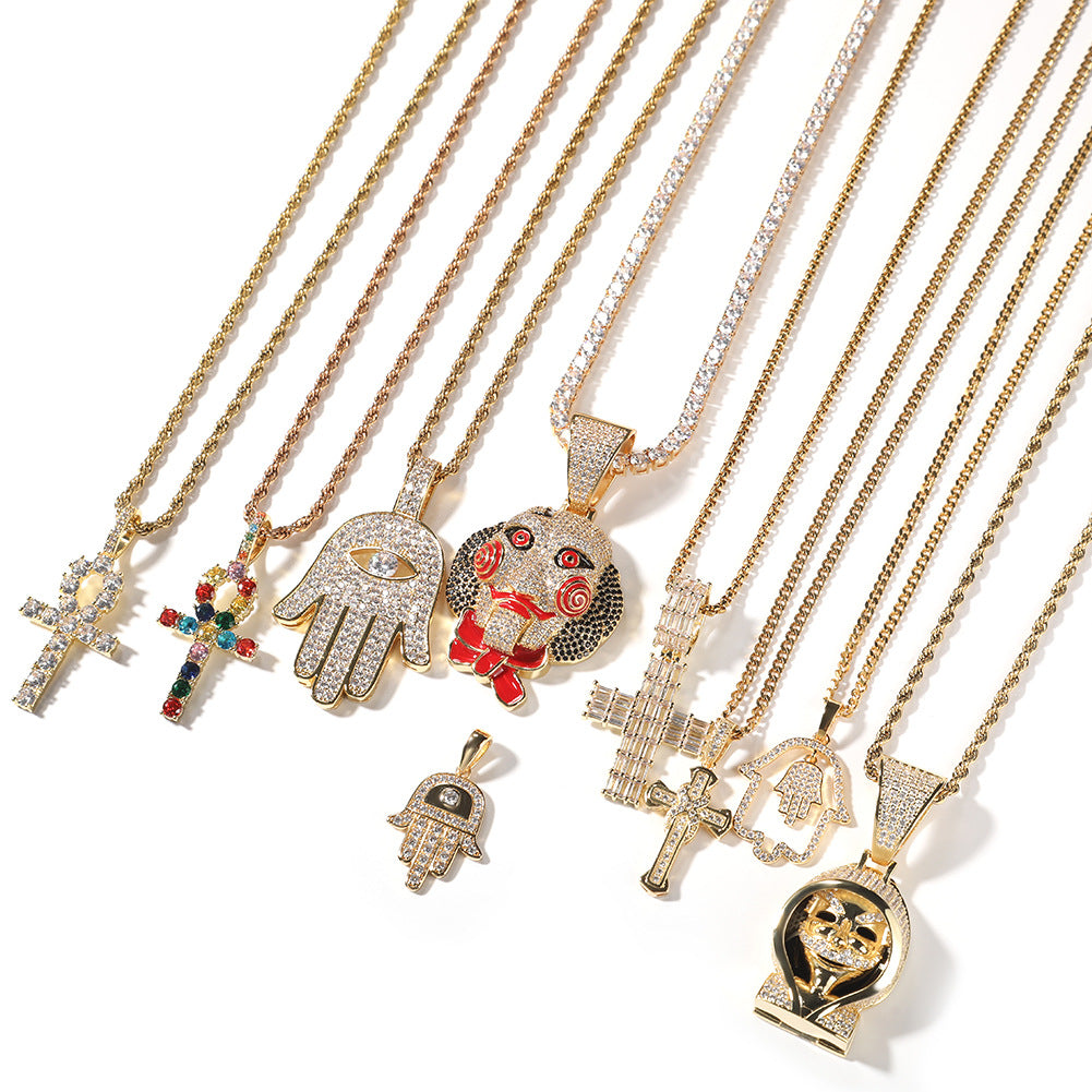 The pendant is beautifully micro-inlaid with sparkling cubic zirconia stones, delivering the brilliance of diamonds at a fraction of the cost. Whether you're stepping out for a party or looking for a meaningful anniversary or engagement gift, this unisex necklace fits all occasions with its modern hip hop aesthetic.