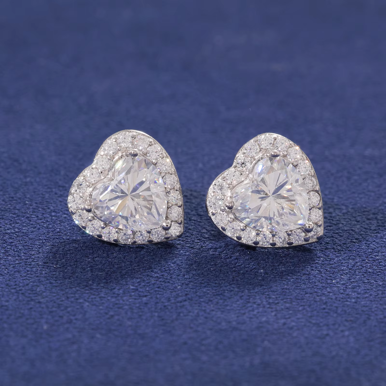 ICE STONE 925 Sterling Silver VVS D Moissanite Heart Earrings – Trendy Iced Out Studs for Women